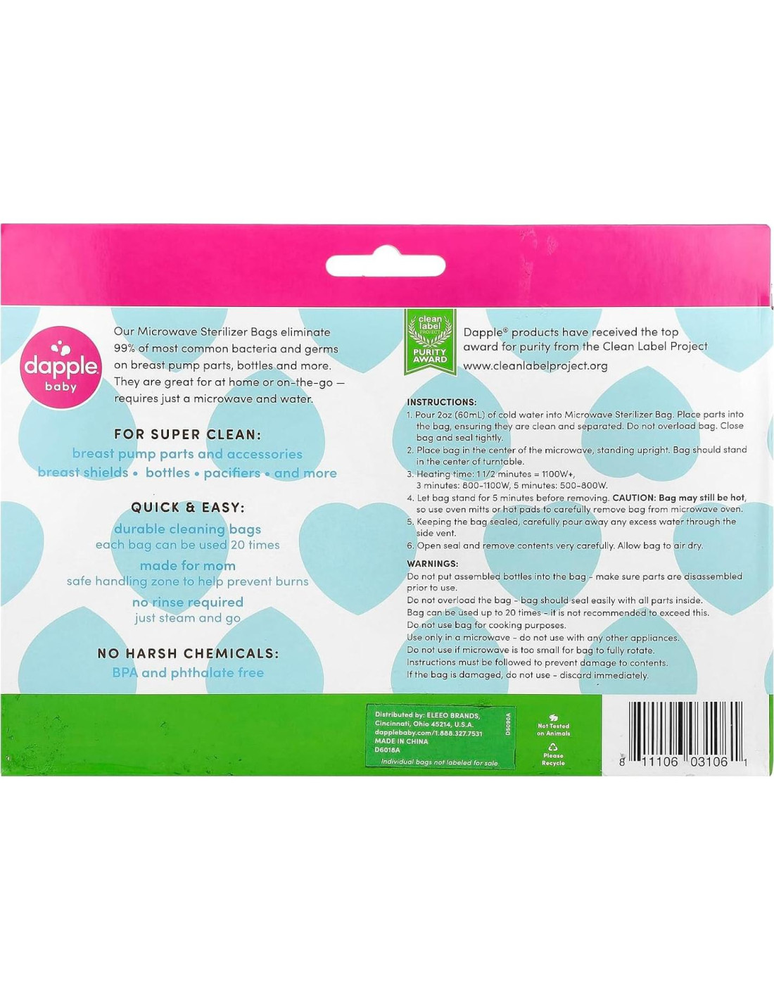 - Esterilización Rápida y Fácil: Nuestras Bolsas Esterilizadoras para Microondas eliminan el 99% de las bacterias y gérmenes más comunes en partes de extractores de leche, biberones y más. No se requiere enjuague, solo vaporiza y listo.