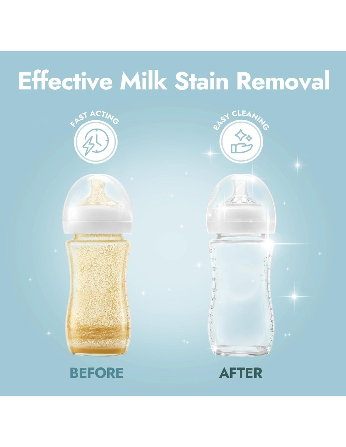 - Sin Manchas de Leche: La lavadora de botellas viene con 120+60 tabletas de detergente deepclean que disuelven poderosamente las manchas de leche; limpieza sin residuos; asegurando que las botellas para bebés estén impecables y seguras para tu bebé