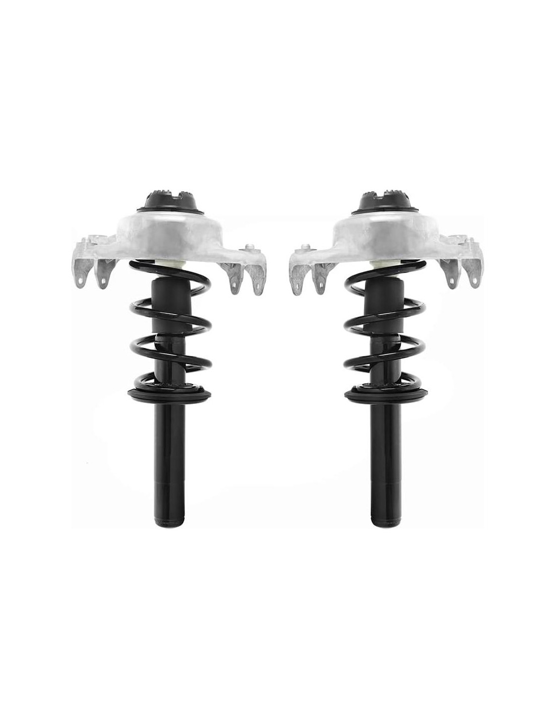 Cuando pides un par delantero de ensambles de estribos completos, eliminas la molestia de reconstruir tus viejos estribos y aseguras que todos los componentes sean nuevos. Estos ensambles de estribos completamente ensamblados, con todas las piezas nuevas, aseguran que has eliminado la posibilidad de componentes defectuosos o comprometidos, como resortes, montajes, rodamientos y/o aisladores que vuelvan a tu suspensión. Nuestros estribos completos y ensamblaje de resortes de bobina listos para instalar hacen que este trabajo de reparación de suspensión sea mucho más rápido y asequible para el aficionado al bricolaje promedio o mecánico. Siempre se recomienda realizar una inspección exhaustiva para asegurar que cualquier componente comprometido como bujes de brazo de control desgastados o juntas de bola que puedan darte problemas de alineación y ruidos y vibraciones no deseadas. Por último, dado que estás instalando nuevos estribos, es importante saber que se necesitará una alineación para asegurarte de que tu suspensión esté configurada de nuevo a la configuración de fábrica. El montaje superior específico para el vehículo asegura un ajuste directo, mejora la dirección y presenta tecnología de elastómero para reducir el ruido y las vibraciones. El acero laminado en frío asegura un ciclo de vida duradero. Diseñado según las especificaciones de OE para restaurar el vehículo a la altura original. Los aisladores de resorte de poliuretano duran más que los insertos de goma originales, previniendo el contacto metal con metal para evitar ruido y vibración entre el resorte de bobina y el soporte del resorte. El diseño duradero de doble tubo consiste en aceite hidráulico y gas nitrógeno. La varilla de pistón cromada interna asegura una lubricación adecuada del sello para un desgaste de superficie consistente y está diseñada con válvulas de amortiguación específicas para el vehículo.