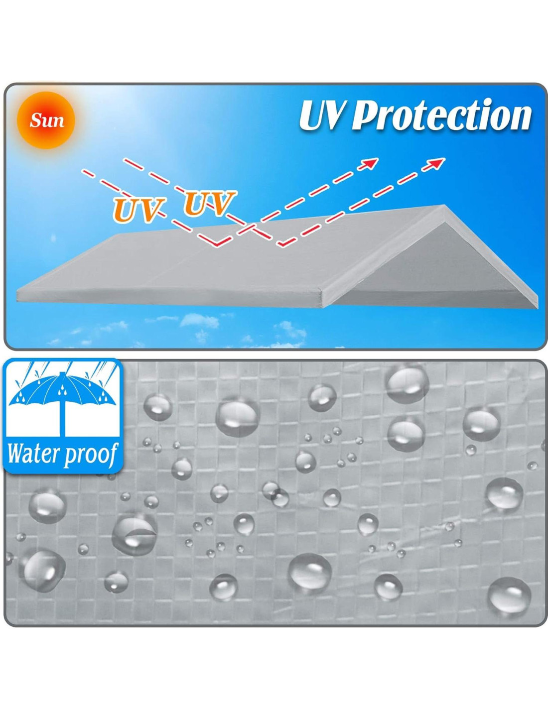 - Uso comercial o recreativo: Carpa de Carport de 10'x20' se adapta a marcos que miden 3.05 m x 6.10 m. Hay suficiente espacio para el estacionamiento del vehículo familiar. La cubierta de la carpa es perfecta para actividades de ocio en terrazas al aire libre, negocios comerciales, fiestas al aire libre, cumpleaños, eventos deportivos, picnics, carports, etc.