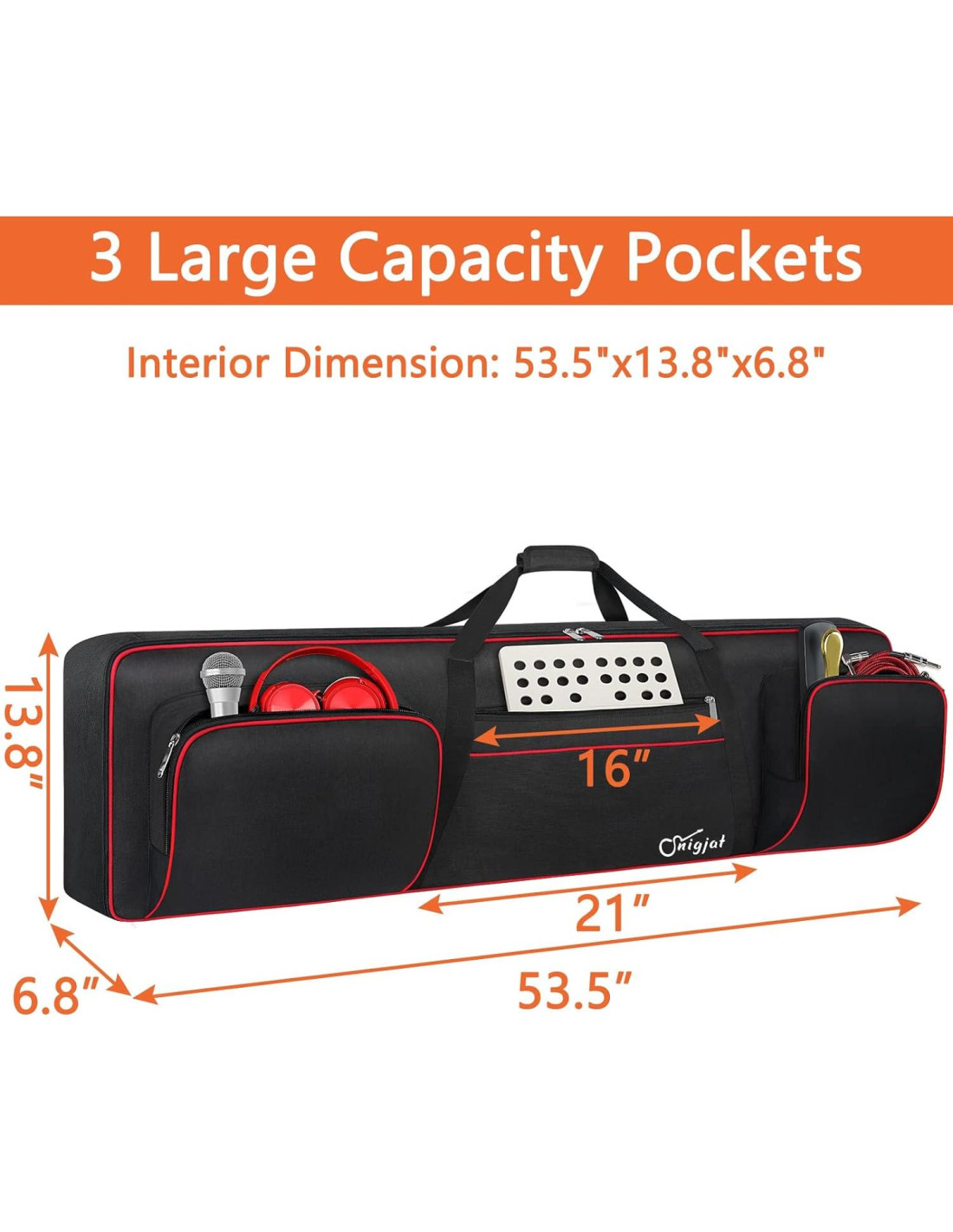 - Tamaño Interior: 53.5 x 13.8 x 6.8 pulgadas (136,17 x 35,05 x 17,27 cm). Por favor, verifica el tamaño de tu teclado antes de comprar. Funda para Teclado de 88 Teclas: La bolsa para teclado de 88 teclas se adapta a la mayoría de los modelos populares de teclado de 88 teclas. La gran funda para piano tiene 3 bolsillos exteriores con cremallera, proporciona mucho espacio para soportes de partituras que son más pequeños que 16 pulgadas (40,64 cm), libros de música, pedales, cables, iPads, etc. Puedes almacenar o transportar tu querido teclado y organizar accesorios musicales en cualquier momento y lugar.