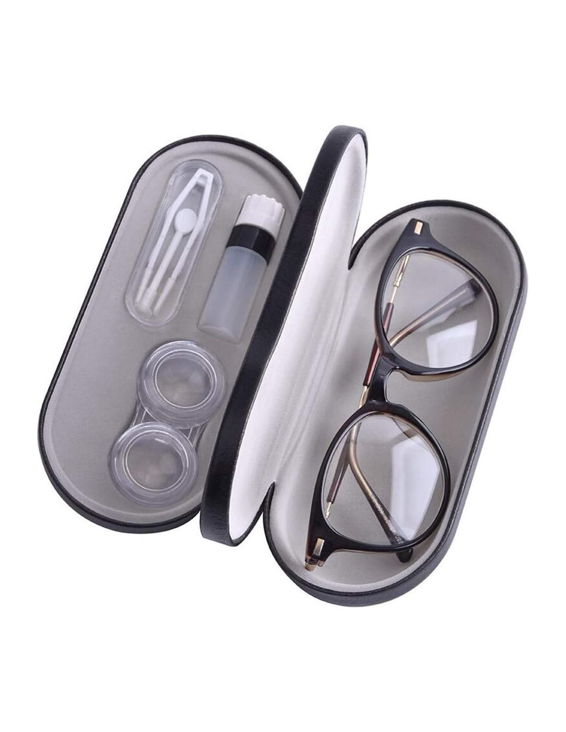 - DISEÑO DE USO DUAL - El estuche tiene dos lados, uno para las gafas, el otro para lentes de contacto y sus accesorios, incluyendo caja doble para lentes de contacto, una botella de solución y pinzas suaves con punta de goma.