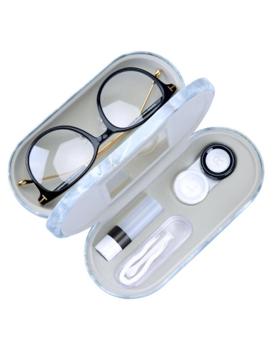 - Doble Uso: Nuestro estuche para lentes de contacto tiene dos lados, uno para las gafas, el otro para lentes de contacto y sus accesorios; no tendrás que preocuparte por dónde poner tus gafas cuando uses lentes de contacto de color