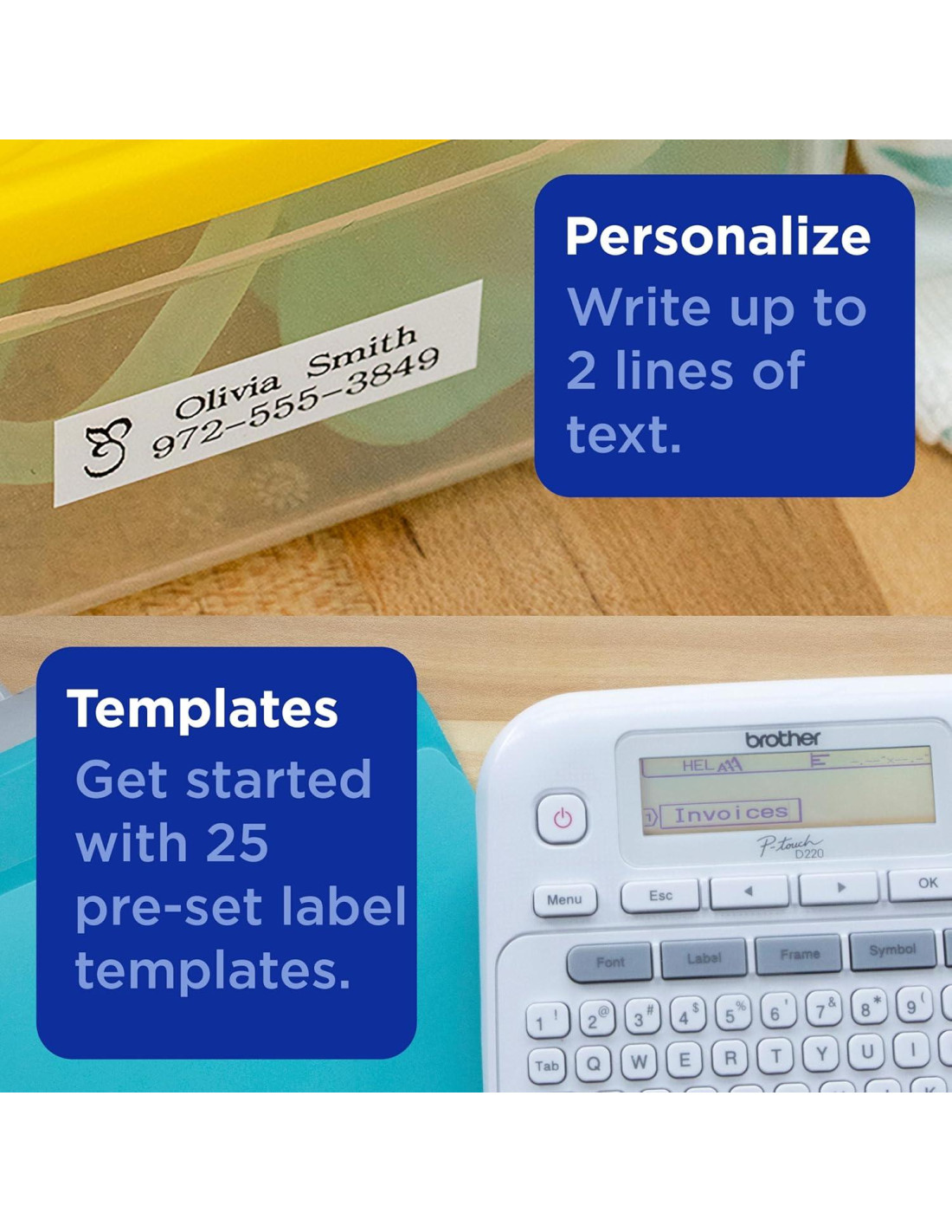 ¿Caos? Conoce la organización. La Etiquetadora Brother P-touch PT-D220 para Hogar/Oficina es versátil, fácil de usar y la forma eficiente de eliminar el desorden en cualquier área del hogar o la oficina. ¿Qué se puede organizar con una Etiquetadora Brother P-touch? ¡Casi cualquier cosa! Con un teclado QWERTY y teclas de formato de un toque, esta etiquetadora portátil te convierte en un héroe de la organización. Crea calma en los armarios y restaura fácilmente el orden en tu oficina en casa identificando tus archivos, organizando el contenido de tu escritorio y organizando armarios y estanterías a la perfección. ¡Crear etiquetas es prácticamente infalible! Previsualiza antes de imprimir gracias a la pantalla de 15 caracteres. ¿Tienes una etiqueta favorita que te gustaría volver a imprimir repetidamente? ¡No hay problema! Puedes almacenar hasta 30 diseños de etiquetas de uso frecuente para una rápida reimpresión. Adelante, muestra tu estilo único eligiendo entre 14 fuentes diferentes, 11 estilos de fuente, 99 marcos y más de 600 símbolos. Para usar con cintas de etiqueta Brother Genuine TZe. Disponible en una amplia variedad de opciones que incluyen cintas laminadas, cintas impermeables, cintas premium con brillo, adhesivo extra fuerte para superficies irregulares, cintas de seguridad a prueba de manipulaciones y más. Dominar tu lista de tareas de organización no podría ser más fácil o satisfactorio. ¿Quieres diseñar e imprimir etiquetas en tu PC e imprimir en cintas de etiqueta de hasta 3/4" (18mm)? Consulta la Etiquetadora Conectada Avanzada Brother P-touch para Hogar/Oficina PT-D410.