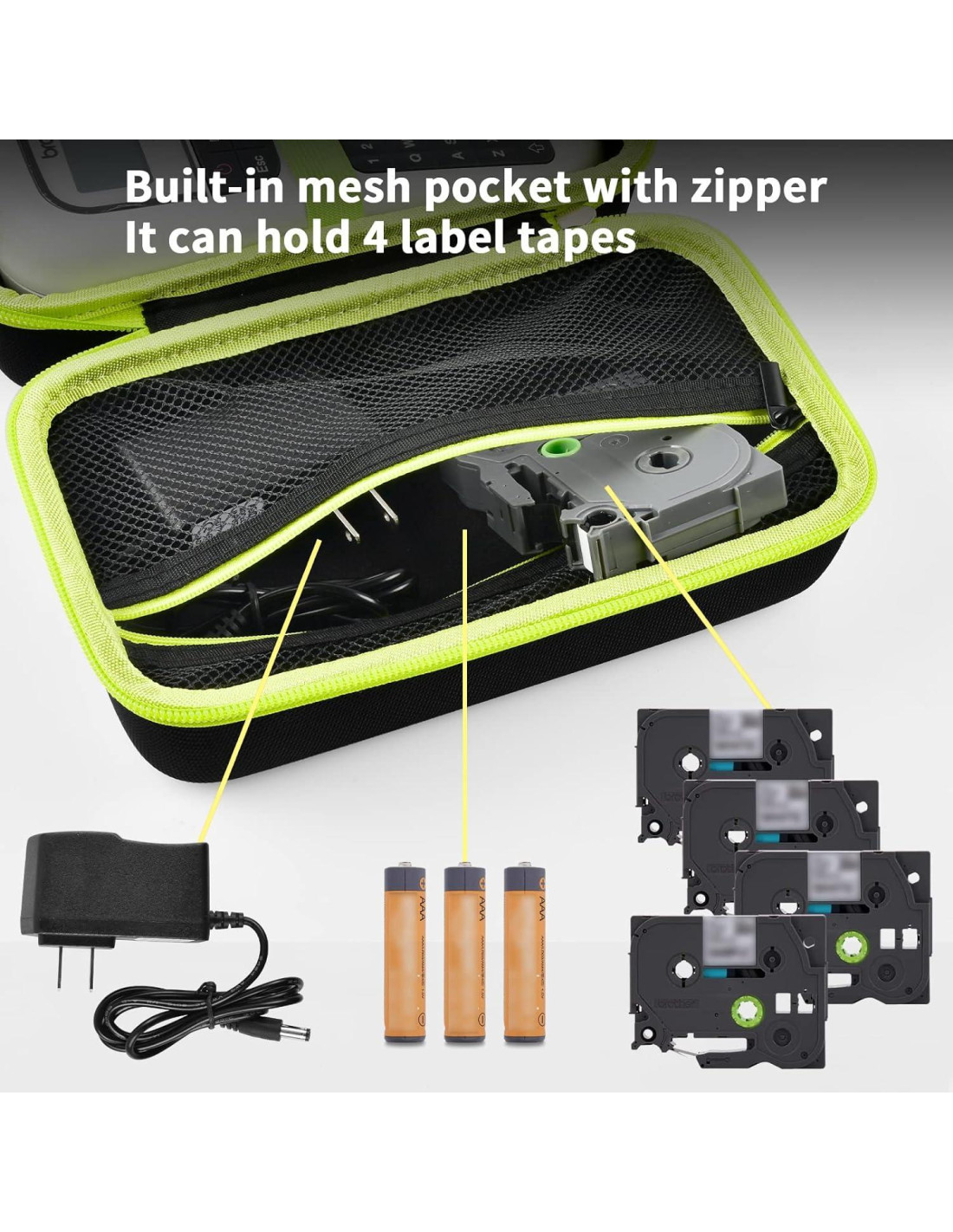 - Para funda de etiquetadora brother: La caja de almacenamiento para la etiquetadora se adapta a Brother para P-Touch PTH110BP/ PTH110/ Pro PT-H111/ PTE110, etiquetadora portátil fácil de transportar. El soporte para la máquina de etiquetado con cinta también puede almacenar 4 cintas de etiqueta de repuesto, adaptadores de CA, cables de alimentación, baterías y otros accesorios. (Solo caja de transporte, no incluye kit de herramientas de etiquetado de mano)