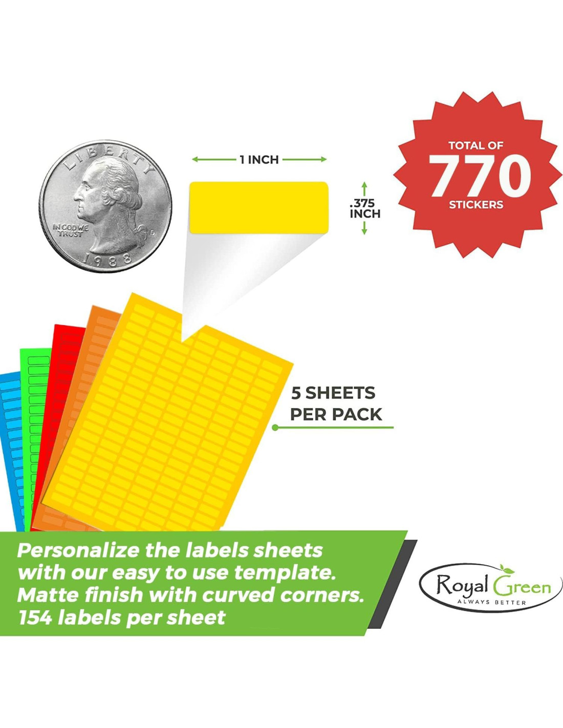- ETIQUETAS PRÁCTICAS CON PLANTILLA INCLUIDA - Cada etiqueta adhesiva rectangular mide 1" x 0.375" (25.4mm x 10mm). Úsalas convenientemente como etiquetas de nombre, etiquetas y pestañas para archivos, carpetas manila, cuadernos, pequeñas cajas, cables y contenedores. Estas etiquetas adhesivas imprimibles de identificación y etiquetado de tamaño pequeño vienen con una plantilla fácil de usar lista para ayudarte a personalizar tus etiquetas adhesivas en blanco.