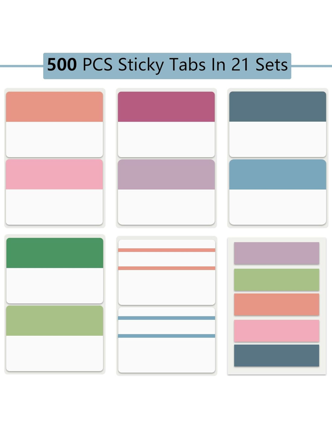 - Etiquetas Adhesivas: 500 piezas 21 conjuntos en total, 400 piezas de etiquetas adhesivas de 2 pulgadas en 20 conjuntos con diferentes colores pastel, 100 piezas de etiquetas de 0.5 pulgadas en 1 conjunto, 20 piezas de cada color