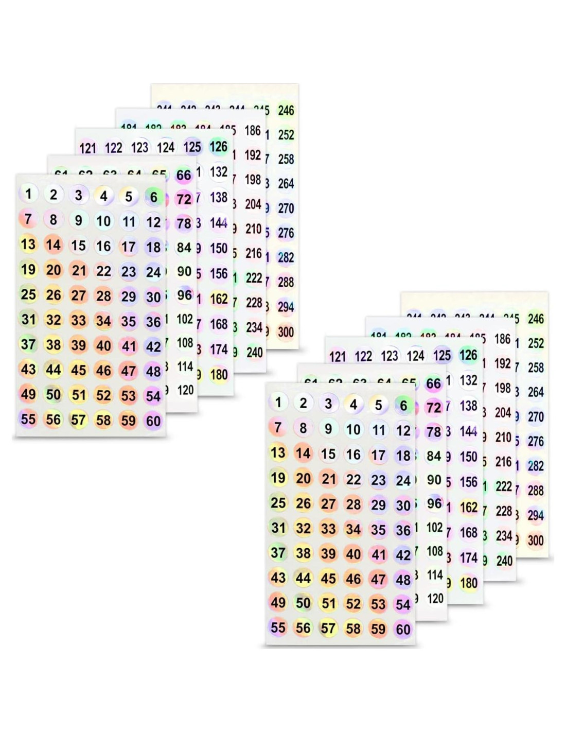 - [Juego de Etiquetas de Números Dobles] 2 juegos de etiquetas de números (del 1 al 300), un total de 10 hojas, 60 etiquetas en cada hoja. El diámetro de las etiquetas de número redondas es de 10mm/0.39".