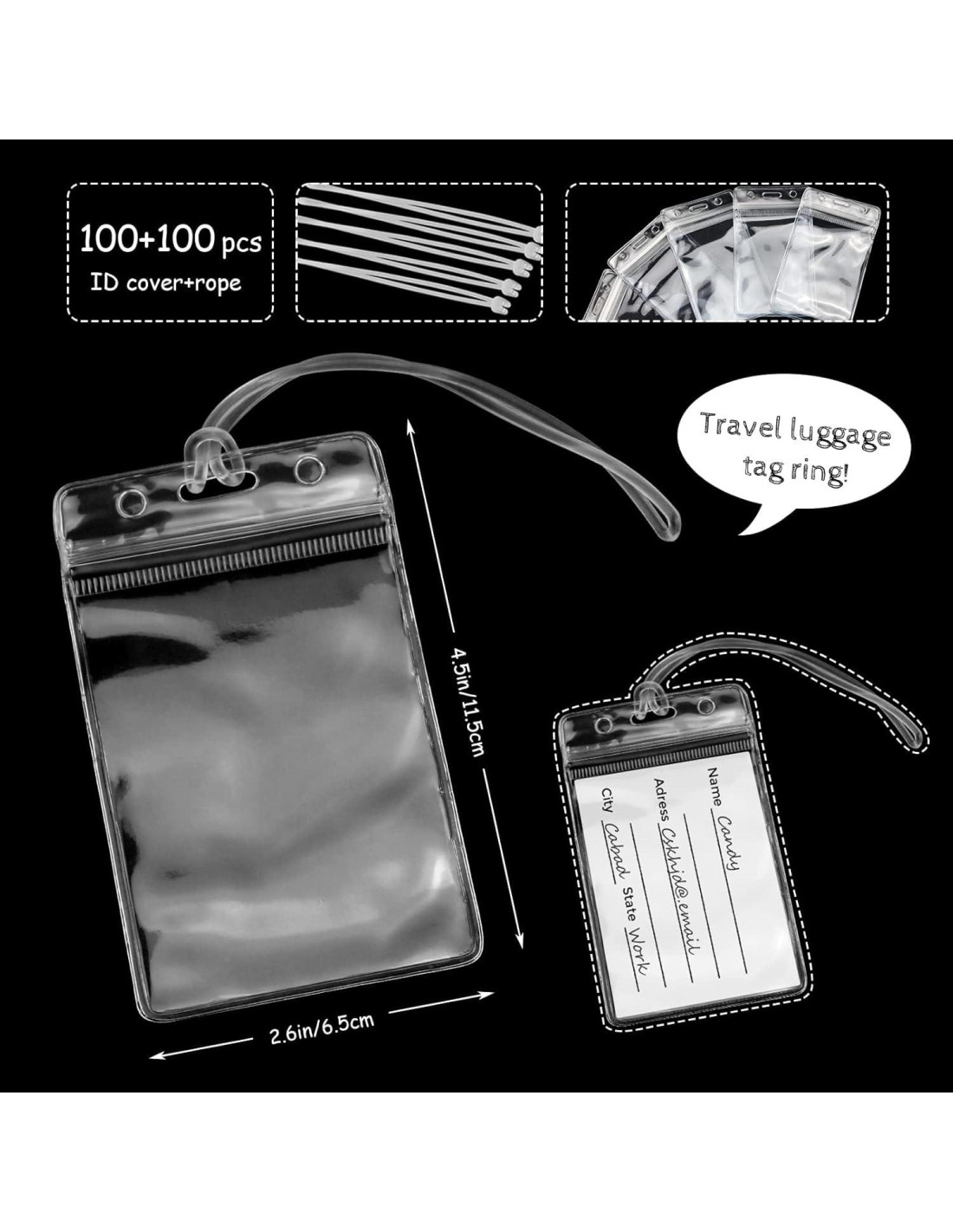 - Uso amplio: Estos soportes de etiquetas para maletas son adecuados para etiquetas de equipaje de viaje, etiquetas de maletas, insignias de enfermera, tarjetas de crédito, identificación de autobús, pase de visitante, tarjeta de acceso, tarjeta de membresía y más, adecuados para varias ocasiones, como viajes, conferencias, ferias comerciales, empresas, conciertos, eventos, bodas y otros grandes eventos.
