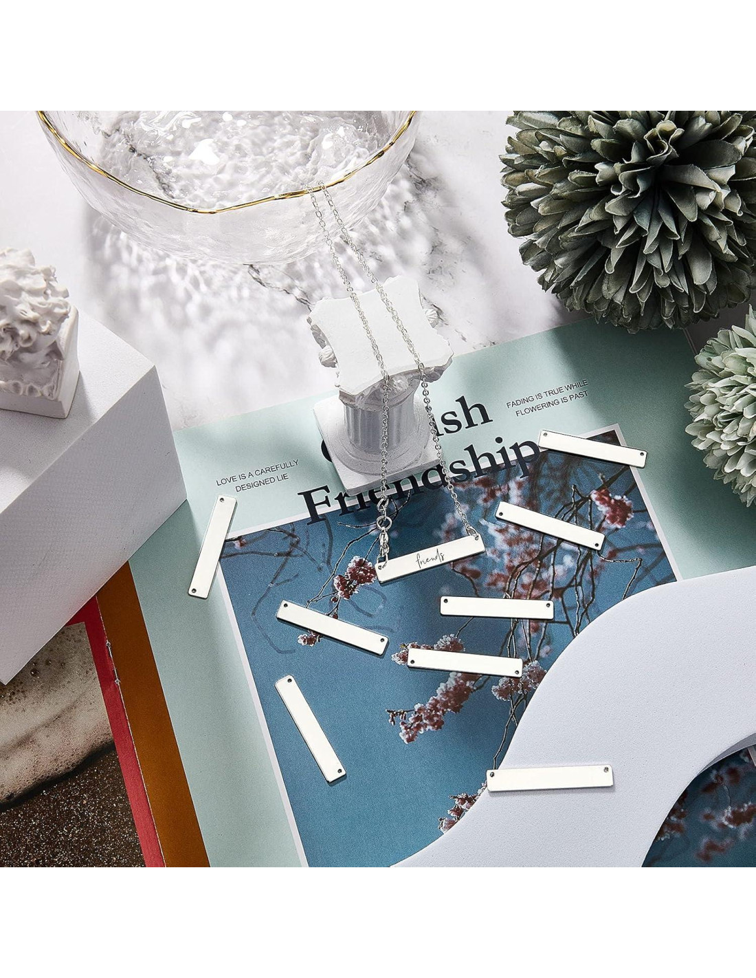 - Lo que recibirás: el paquete viene con 30 piezas de colgantes de barra vacía de estampado rectangular en plata, cantidad suficiente y color clásico que puede satisfacer tus diversas necesidades o como respaldo en la vida diaria, también puedes compartir con otros