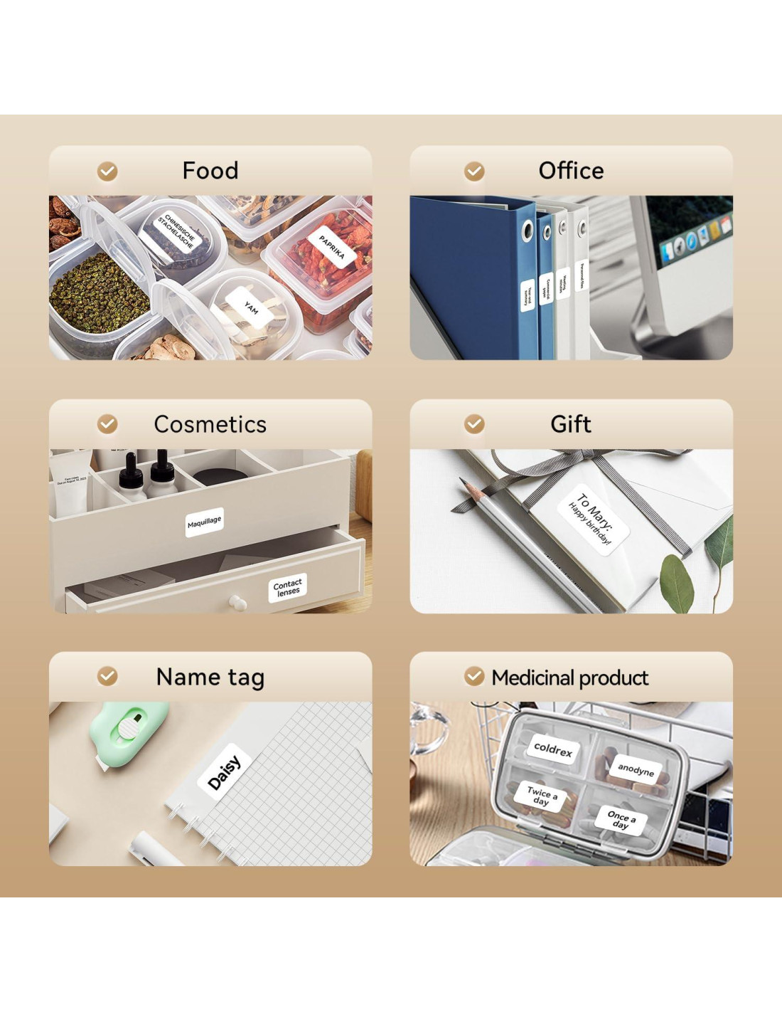 - Etiqueta de identificación inteligente Todo el papel de etiqueta es adecuado para la impresora de etiquetas D11, que puede identificar inteligentemente la plantilla de papel de etiqueta, haciendo que la impresión sea más inteligente.