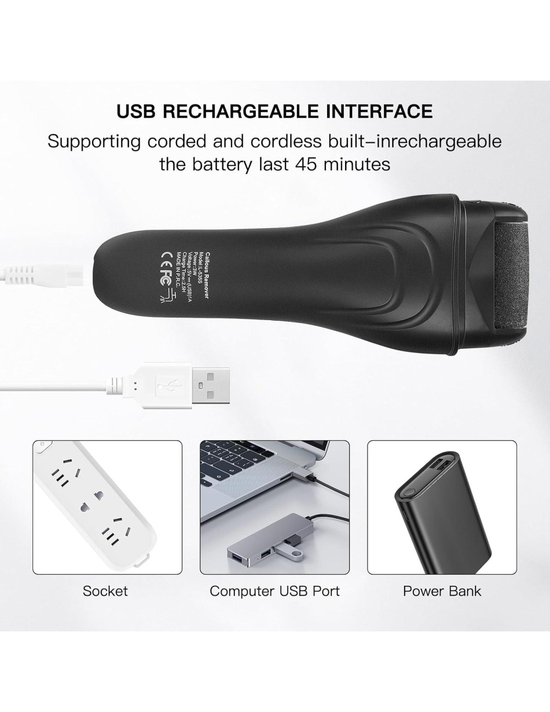 - 3 VELOCIDADES AJUSTABLES: El removedor eléctrico de tejido curativo para pies tiene 3 velocidades, ajustables según sus necesidades, carga USB, batería de litio de gran capacidad, corto tiempo de carga.