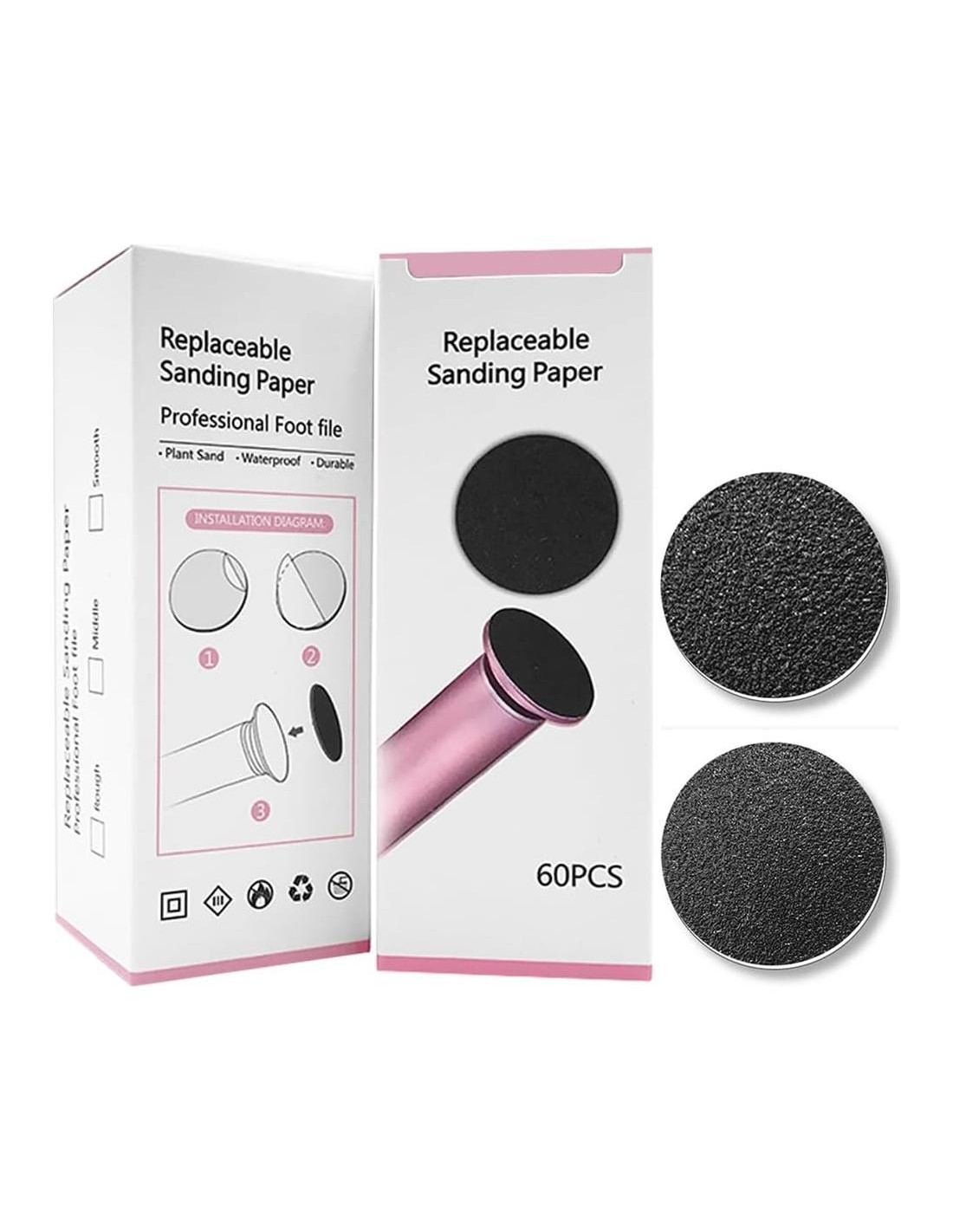 Juego de papel de lija de 60 piezas para removedor de callos de archivo eléctrico (30 grano fino y 30 grano grueso)