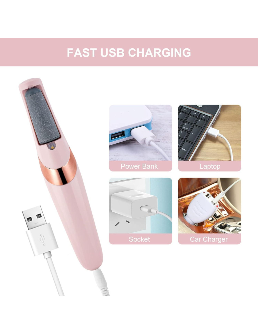 - [CARGA RÁPIDA Y PORTÁTIL] El Removedor de Callos Eléctrico incluye un cable de carga USB, que se puede cargar a través de cualquier puerto USB con un tiempo de carga corto; Diseñado ergonómicamente, mango fácil de agarrar, ligero y cómodo de usar, húmedo o seco, lo que lo convierte en el kit de viaje perfecto para hombres y mujeres