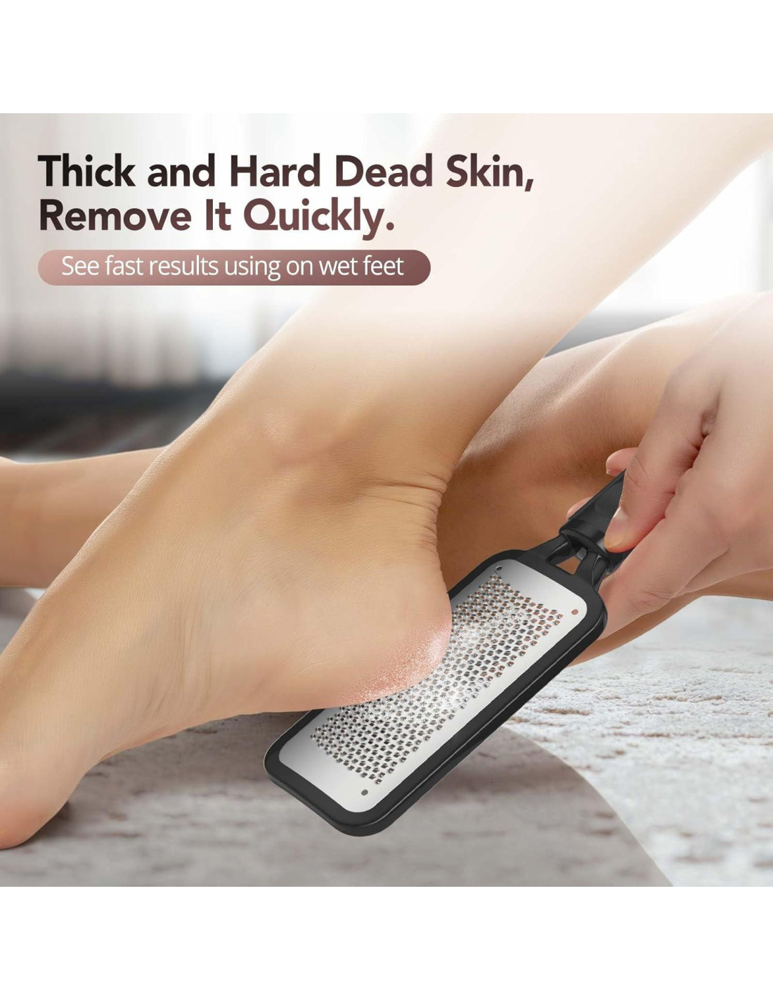 - Diseño Afilado y Seguro: Este removedor de callos con una gran y afilada superficie de acero inoxidable con patrón ondulado. Exfolia y suaviza la piel dura, áspera y callosa con poco esfuerzo. Afeitadora de callos segura, suave y efectiva para los pies.