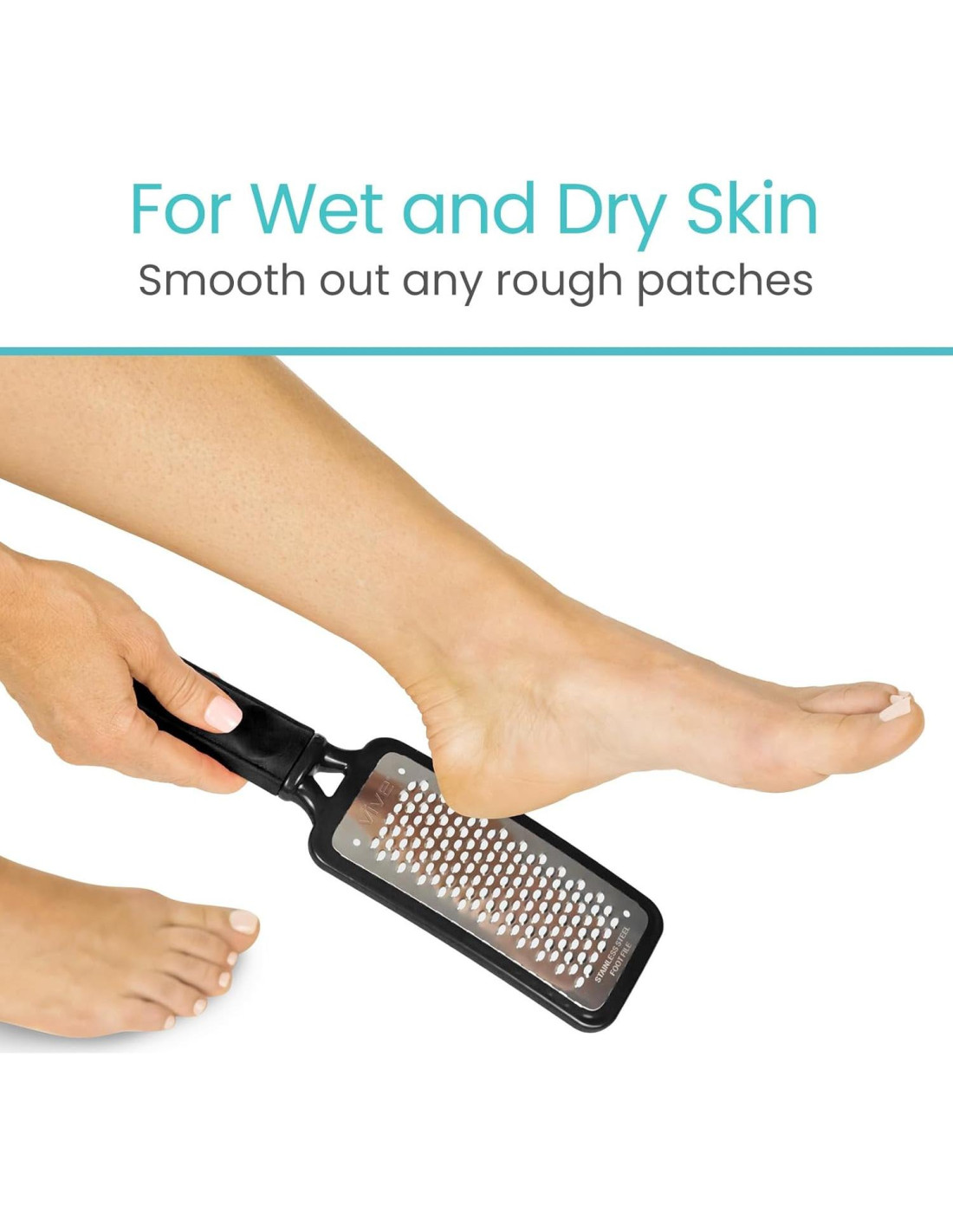 - ELIMINA FÁCILMENTE LA PIEL SECA Y AGRETADA: Segura para uso en piel húmeda o seca, el juego de limas de pedicura elimina la piel muerta, los callos y la piel endurecida en los talones y pies, así como en otras áreas donde aparece piel áspera. Más efectiva que una piedra pómez, las limas de acero inoxidable dejan la piel sintiéndose más suave y lisa.