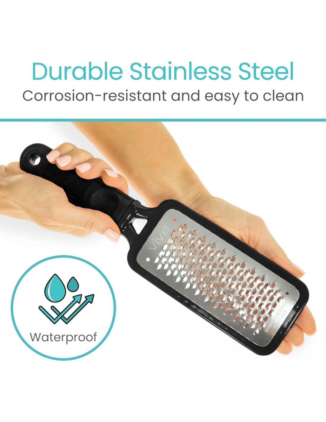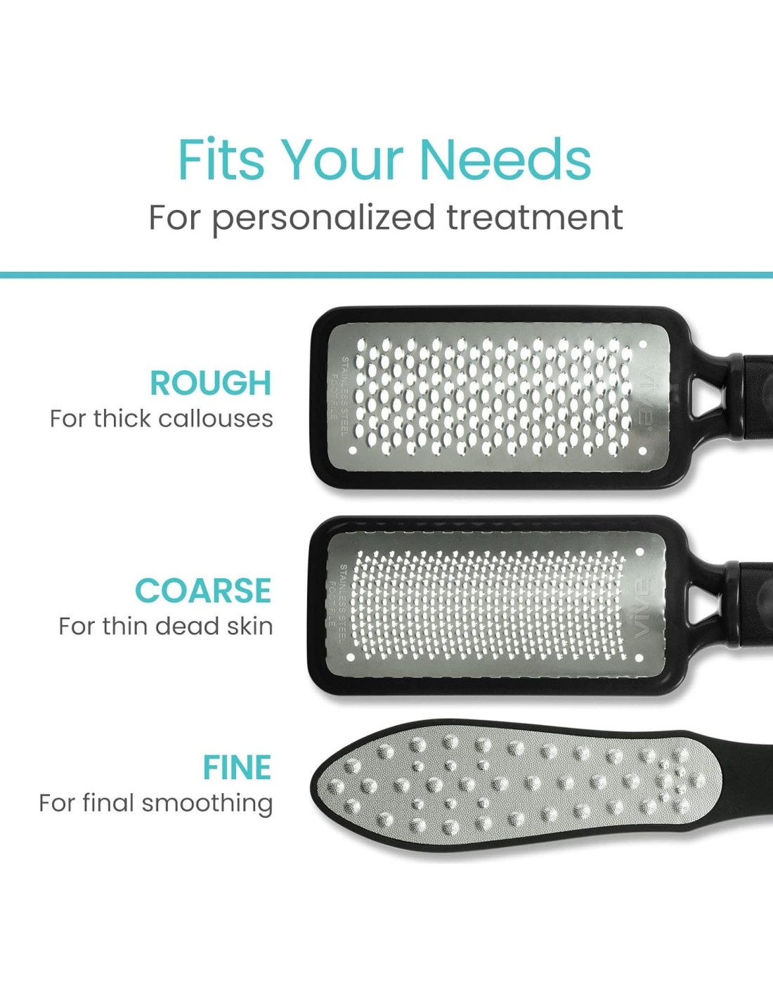- JUEGO DE TRES LIMAS PARA PIES: Suaviza y ablanda la piel áspera y seca con el juego de limas de acero inoxidable afiladas de Vive. Ofreciendo tres grados de aspereza, cada lima es segura para uso en húmedo o seco, eliminando efectivamente la piel muerta y seca. El juego incluye una lima áspera, una lima gruesa y una lima fina para suavizar y ablandar la piel.