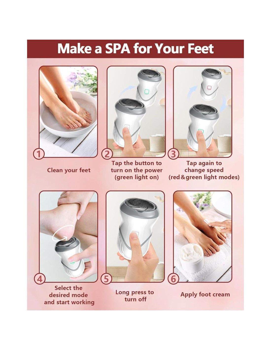 - Poderoso y Versátil Removedor de Callos Eléctrico: Experimenta el cuidado definitivo para los pies con la lima para piel muerta. Este removedor de callos eléctrico compacto y portátil para pies cuenta con un gran cabezal de lijado que aborda eficientemente la piel muerta y los callos. Ideal para mantener pies suaves y hermosos en casa, es tu removedor de callos eléctrico para lograr resultados de calidad de salón.