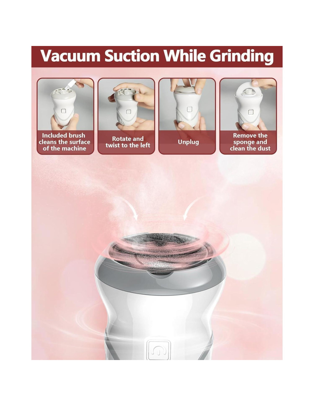 - Función de Aspiradora Integrada: Mejora tu rutina de pedicura con nuestro innovador removedor de callos eléctrico que cuenta con una función de aspiradora integrada. Este diseño asegura que el 98% de la piel muerta sea succionada mientras se lija, proporcionando una experiencia de cuidado de pies más limpia y eficiente. Di adiós a la limpieza desordenada y disfruta de resultados impecables.