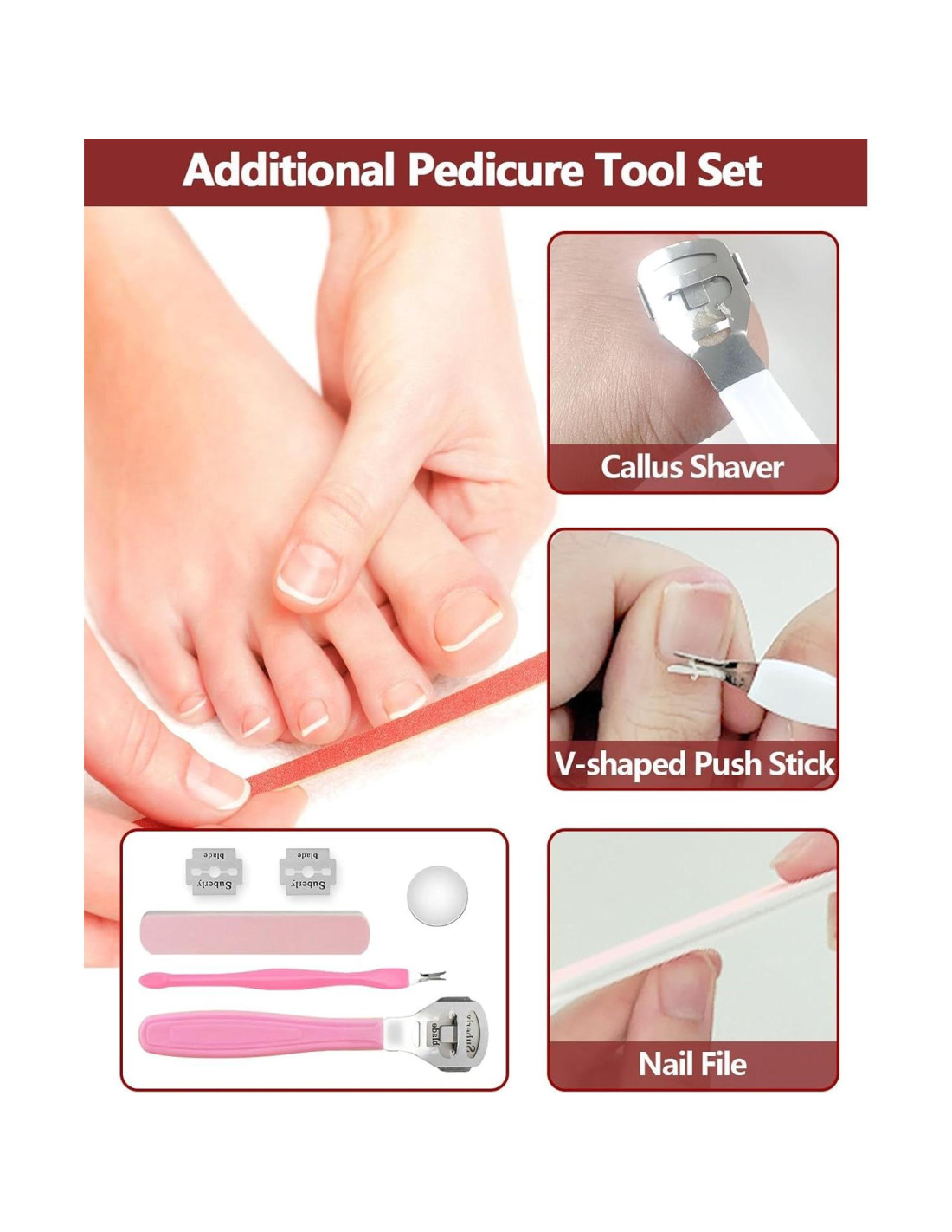 - Mejorado para Seguridad y Precisión: Nuestro set de lima eléctrica para pies es una alternativa más segura y suave a las limas manuales para pies que pueden causar abrasiones. A diferencia de los comunes exfoliadores eléctricos para pies, nuestro dispositivo ofrece una exfoliación más fina y eficiente sin obstrucciones. El set incluye un exfoliador eléctrico para pies, un cable de carga, seis cabezales de rodillo de repuesto (uno preinstalado y cinco extras), un cepillo de limpieza y una almohadilla de espuma de repuesto.