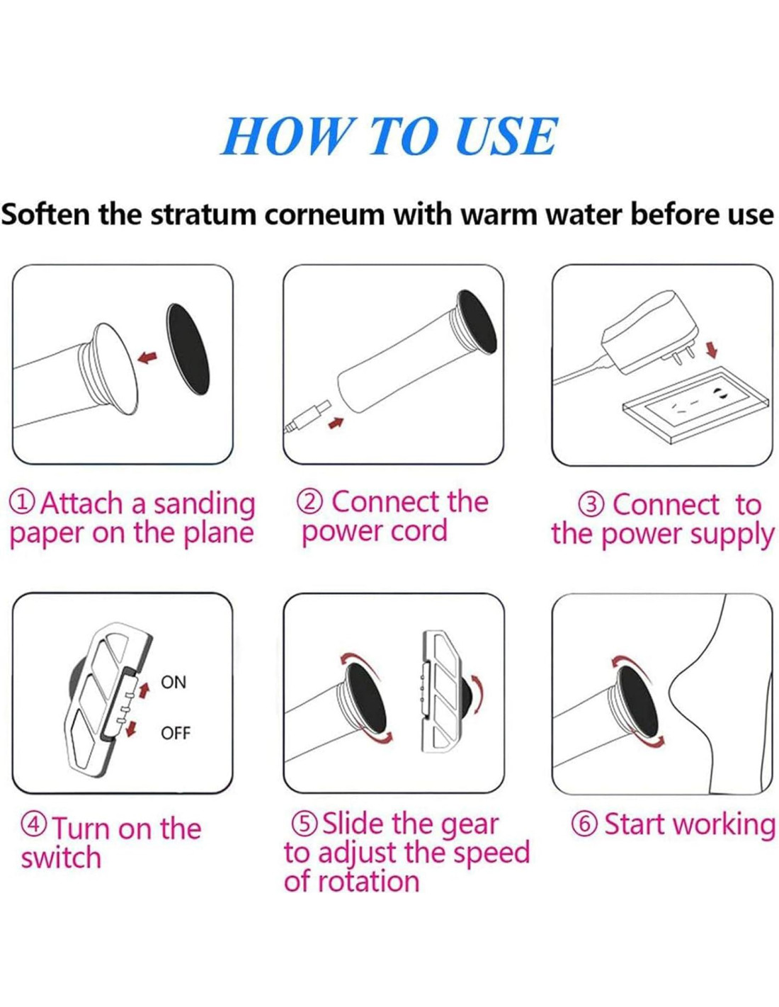 - 1. Alta Calidad: Equipado con un motor potente de alta calidad, puede girar 360 grados para eliminar talones agrietados, sequedad, piel muerta y callos.