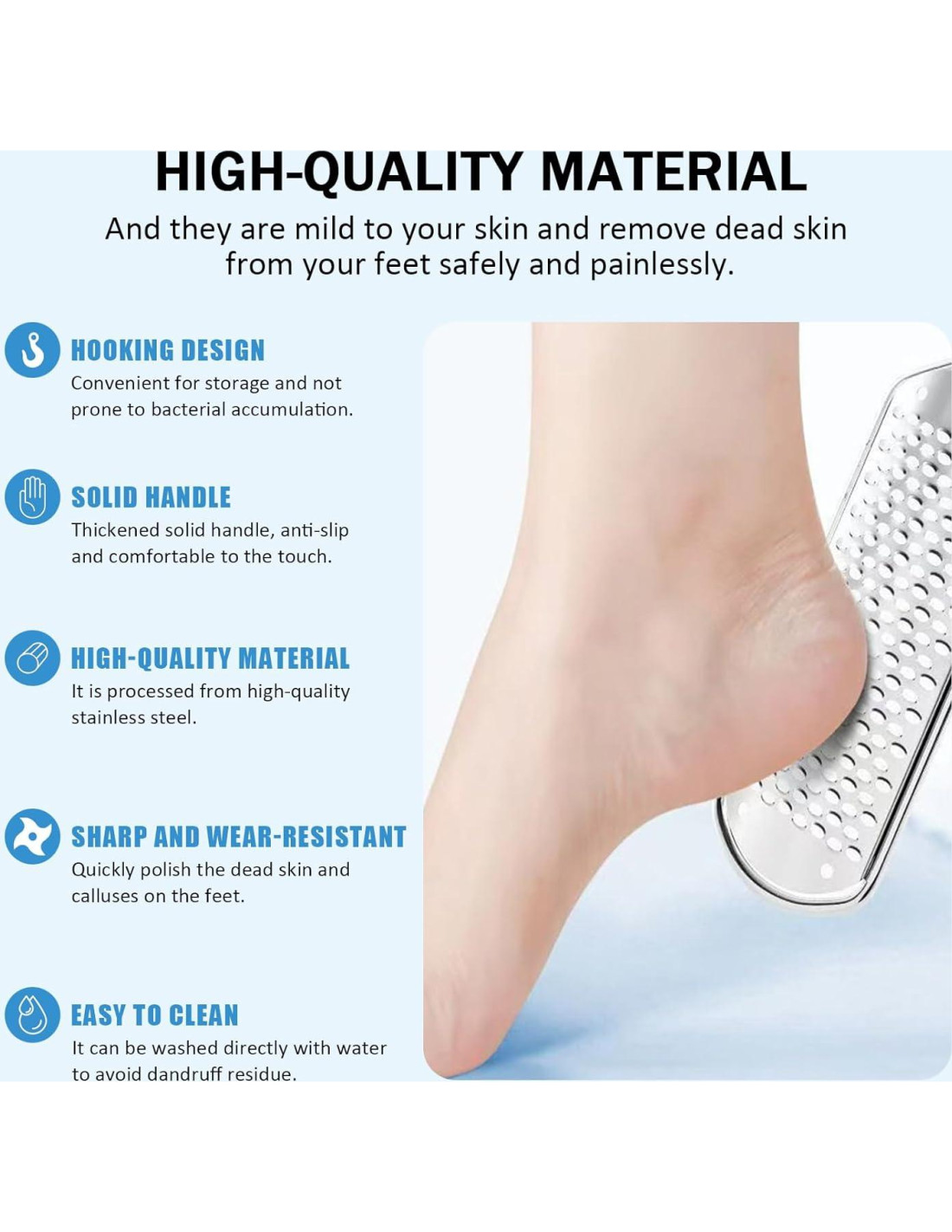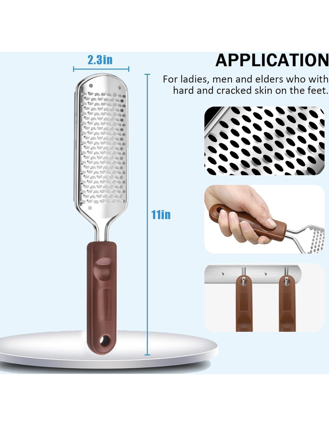 - Fácil de limpiar: La construcción de acero inoxidable lavable y reutilizable asegura la higiene. Ideal para la eliminación de piel muerta en los talones y pies callosos sin irritación.