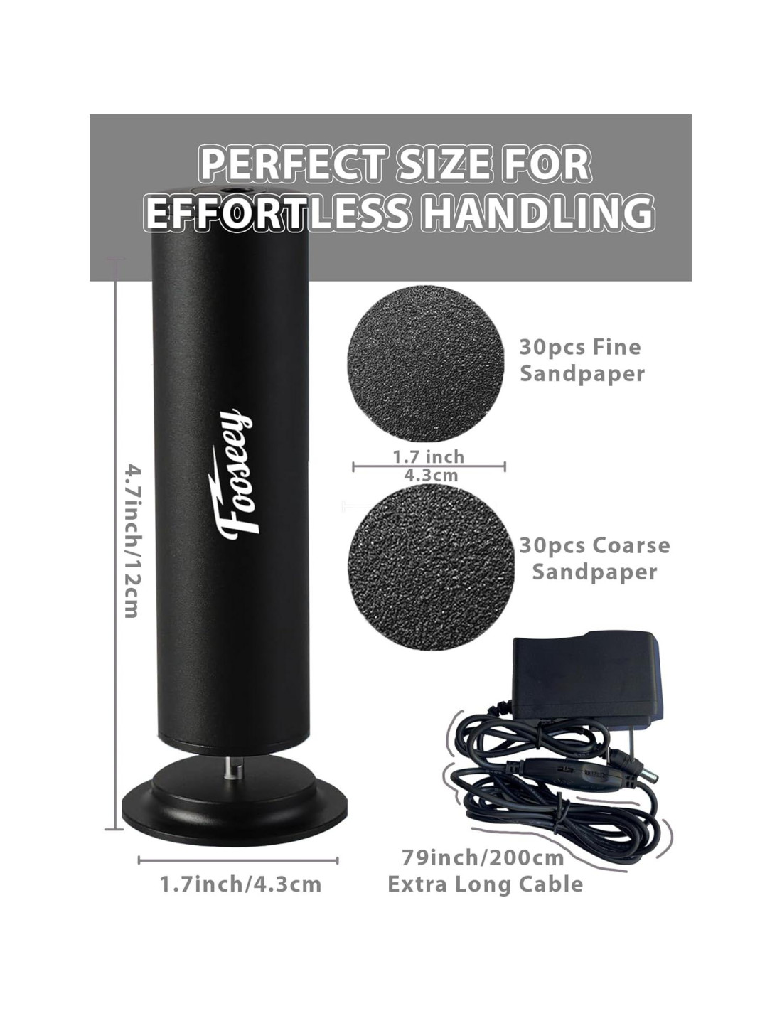 - VERSIÓN MEJORADA: 6.5 FT (2M) cable de alimentación, que es el doble de largo que el otro kit de lima para pies; Velocidad ajustable; 2 tipos de rotaciones; 2 papeles de lija diferentes; Alto par, 50% más alto que otra herramienta de pedicura eléctrica enchufable;