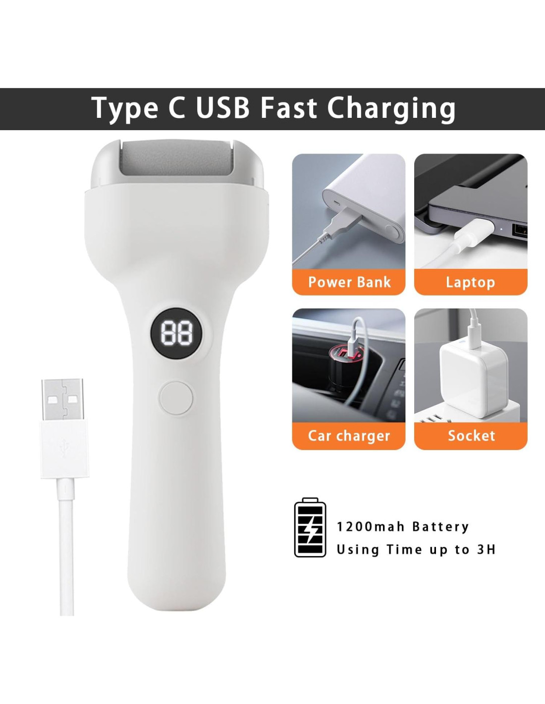 - Batería de Larga Duración: Este removedor de callos eléctrico recargable para pies tiene una potente batería de 1200mAh, ofreciendo comodidad inalámbrica durante todo el día. Ideal como raspador de pies a batería, sin preocupaciones de carga, perfecto para el hogar o viajes.