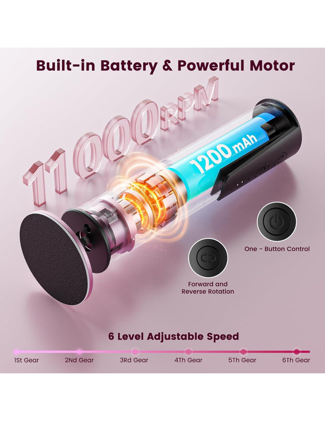 - Motor Potente de Alta Velocidad: Este removedor de callos eléctrico para pies cuenta con un motor de alto rendimiento que alcanza hasta 11,000 RPM. Elimina rápidamente callos, grietas y piel áspera, seca o muerta de pies y manos, dejando tu piel suave y blanda, ahorrándote tiempo y esfuerzo