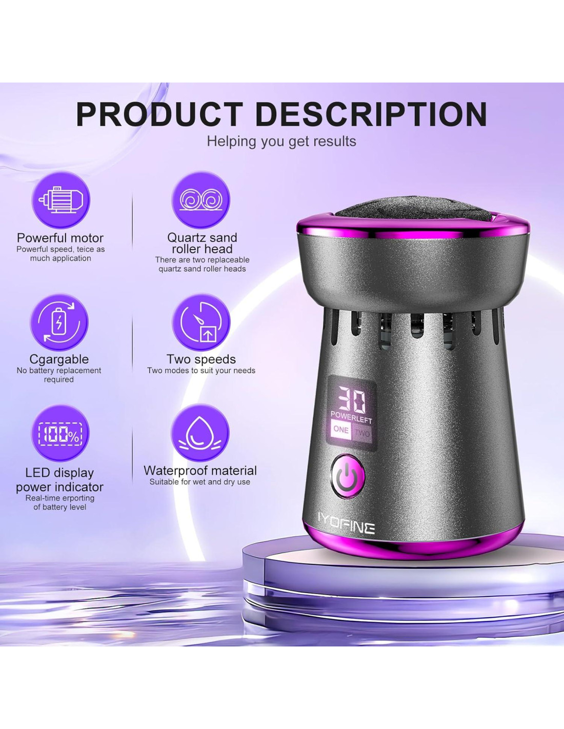 - Impermeable IPX6 y Modos Húmedo/Seco ¡Transforma las duchas en sesiones de spa! Las cabezas desmontables y lavables del exfoliador de pies eléctrico funcionan en modos húmedo/seco, suavizando los callos después de la ducha o dando forma a los talones en seco. ¡Un verdadero molinillo de pies para multitareas!