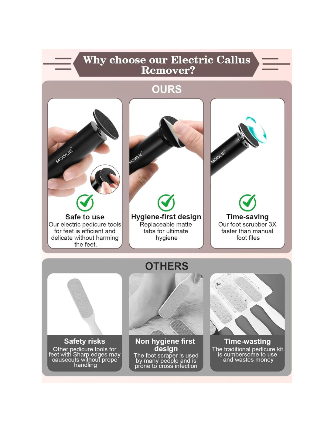 - 1. Potente Lima Eléctrica para Pies para Necesidades de Pedicura Profesional. Experimenta la lima eléctrica de pies de primera calidad de MOWLIE, diseñada con un motor robusto para abordar callos difíciles, piel muerta y talones agrietados con facilidad. Ya sea que estés lidiando con dureza en los talones por tacones altos o callos en los dedos por ropa deportiva, esta herramienta hace el trabajo de manera rápida y efectiva.