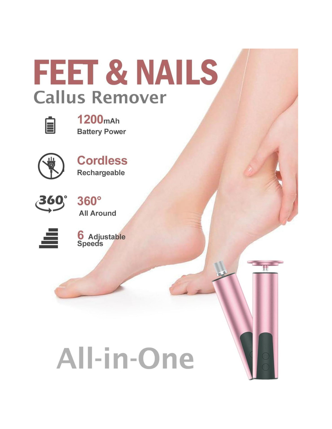 - REMOVEDOR DE CALLOS Y UÑAS 2 EN 1: Este removedor de callos eléctrico funciona como un taladro de uñas y herramientas de pedicura para pies. El molinillo eléctrico para pies secos y agrietados maneja la eliminación de piel muerta mientras que el accesorio de pulido trabaja en las uñas. Disfruta de un spa de cuidado de pies en casa