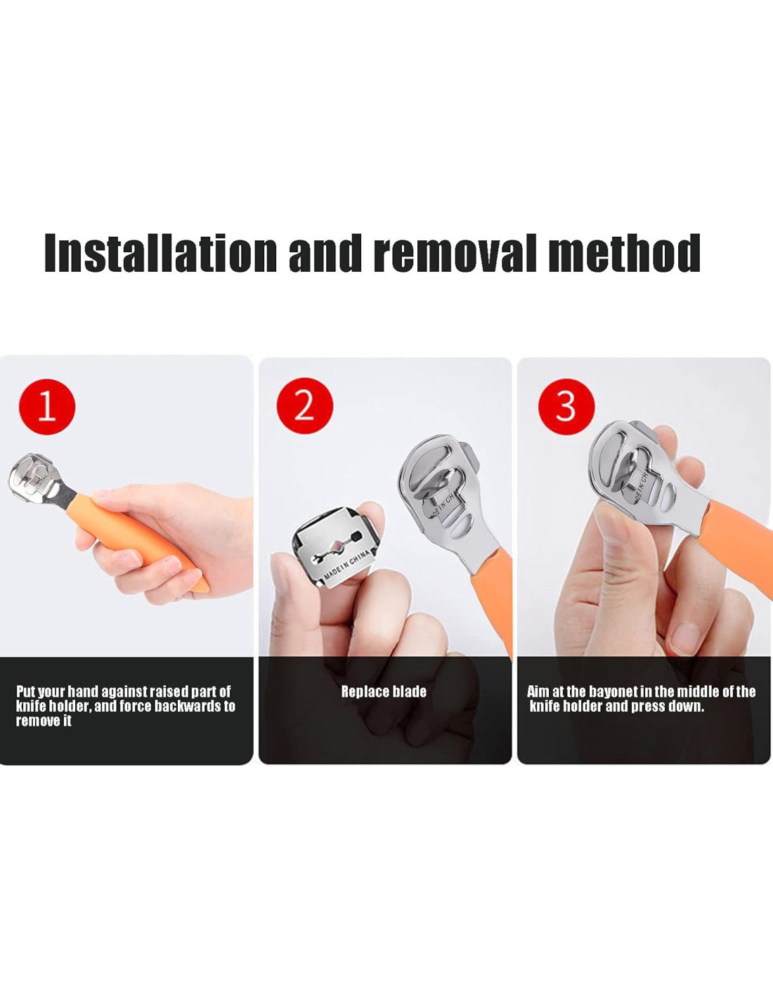 Incluye principalmente jardinería en casa, salud y belleza, productos automotrices y de motocicleta, productos para exteriores, seguridad inteligente, etc. Remoje sus pies en agua tibia durante 15-30 minutos para ablandar la piel muerta y seca. Use un cuchillo de pedicura para raspar la piel muerta y vieja, se recomienda repetir 1-3 veces. Al operar, las cuchillas están paralelas y cerca de la piel. Reemplace la lima de piel muerta para dermoabrasión y pula la piel de la planta hasta que esté suave. El efecto de frotar crema para pies será mejor. 1 x Raspador de Callos 1 x Lima de Piel Muerta 11 x Cuchillas Material: Acero Inoxidable + Plástico Longitud: Aproximadamente 14.3 cm (5.6 in)