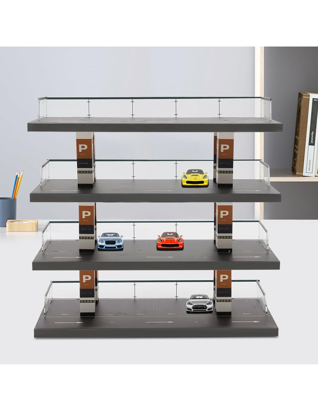 - Este es un excelente diorama de estacionamiento, escalado a 1:64. Materiales exquisitos (acrílico, plástico, madera sólida) y el proceso de corte aseguran que se pueda usar durante mucho tiempo. El diseño de 4 niveles sobredimensionado y el estante de exhibición transparente no solo le brindan suficiente espacio, sino que también amplifican su encanto. Puede convertirse en un hermoso paisaje en su habitación sombría.