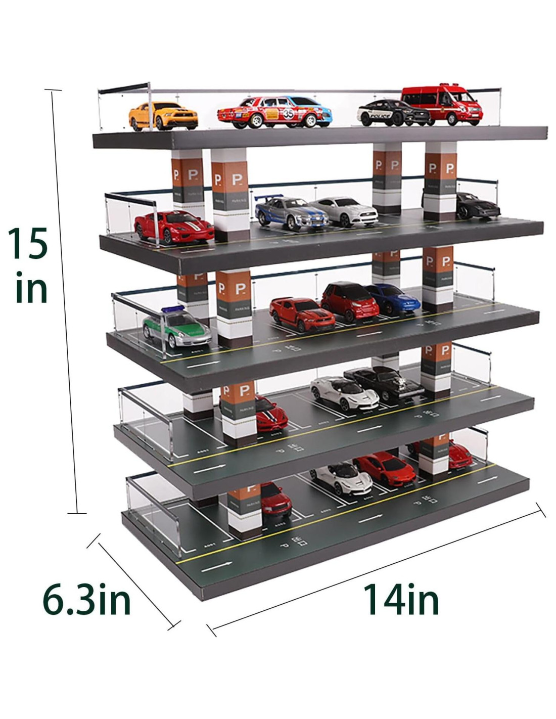 - CAPACIDAD DE ALMACENAMIENTO: Presenta 5 estantes espaciosos para acomodar una amplia gama de vehículos, incluidos coches, camiones, motocicletas y aviones.