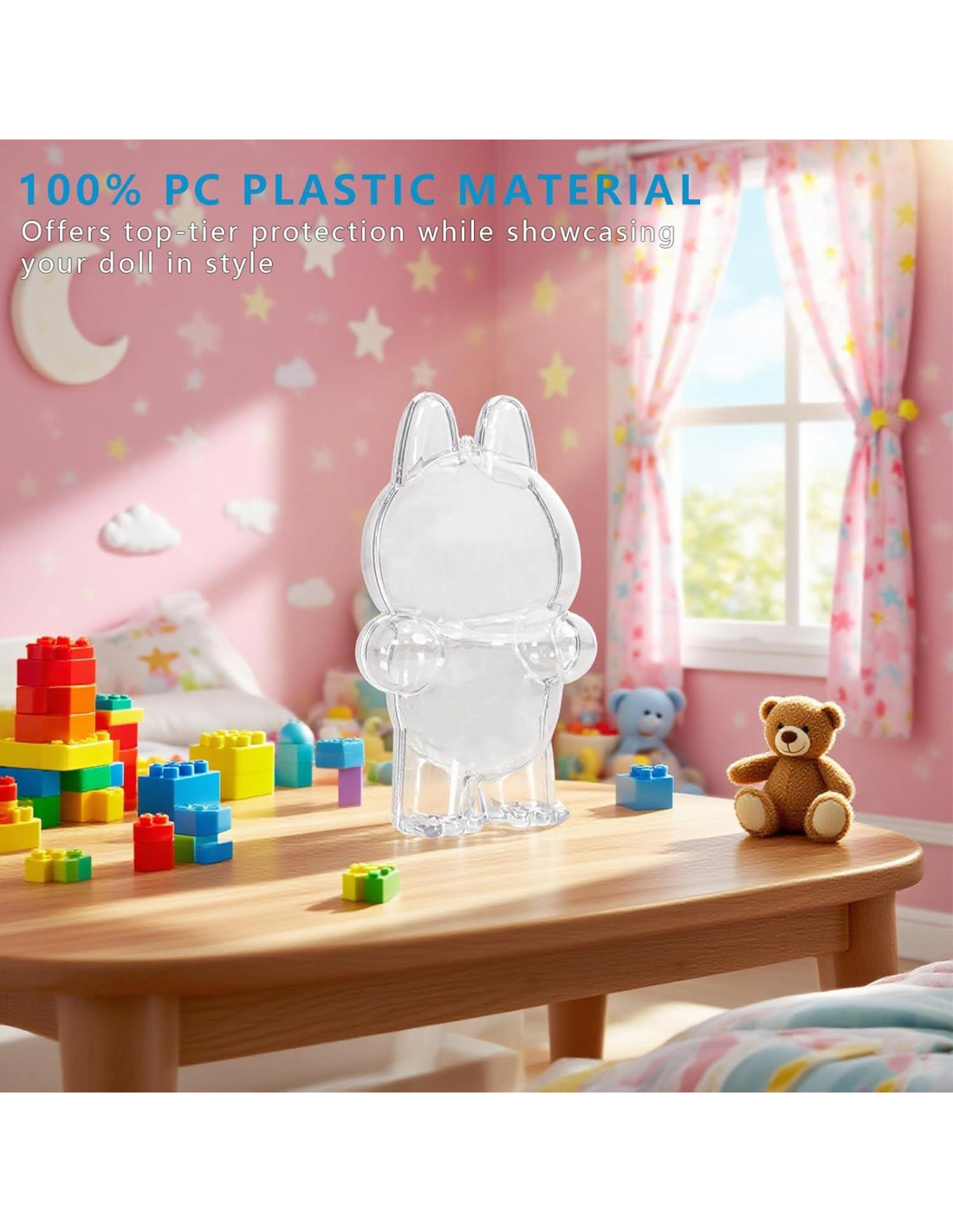 Estuche Protector para Figura de Pie Esta duradera caja de acrílico está especialmente diseñada para proteger y exhibir tu querida figura de pie. La caja de exhibición transparente mantiene tu coleccionable libre de polvo y rayones mientras te permite admirarlo desde todos los ángulos. Razones para Conseguir Una: Exhibe Tu Figura Perfectamente El diseño elegante y transparente te permite mostrar tu coleccionable sin sacarlo de la caja. Colócalo en tu estante, escritorio o incluso cuélgalo - ¡tu figura se mantiene segura y visible en todo momento! Protección Amigable para Viajes ¿Llevando tu figura a convenciones o casas de amigos? El seguro de cierre a presión previene aperturas accidentales, y es fácil de llevar. Uso Multiusos ¡No solo para Muñecas! Este estuche también funciona muy bien para almacenar pequeños coleccionables y figuras mini. Mantenimiento Sin Complicaciones Simplemente limpia con un paño suave Almacena en un lugar fresco y seco, alejado de la luz solar directa ¿Qué Incluye?: 1* Caja de Exhibición de Acrílico Transparente