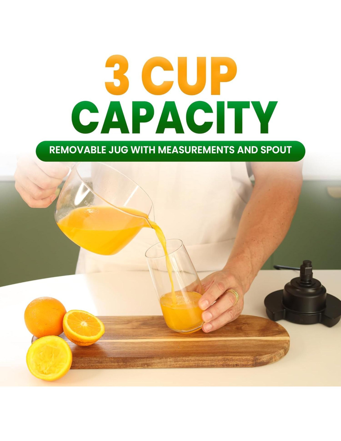 - El exprimidor de cítricos eléctrico con gran capacidad: el jarro de 24 oz permite hacer hasta 3 tazas (800 ml) de jugo de naranja o limón a la vez y tiene un pico de vertido fácil