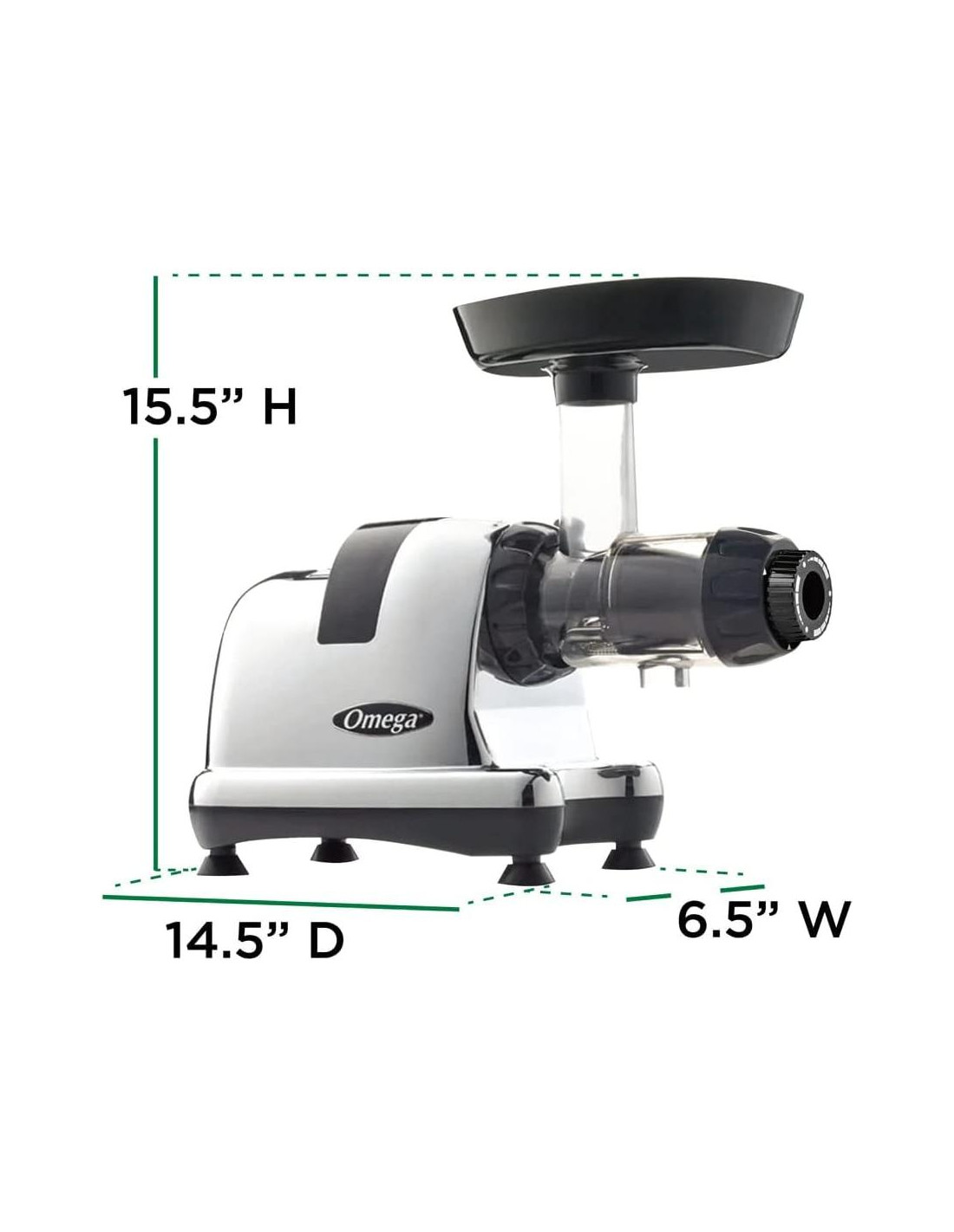 El Sistema de Nutrición Omega J8006HDC es una máquina exprimidora de masticación. A veces se le llama exprimidor de baja velocidad, el Centro de Nutrición procesa a 80 RPM, mientras que la mayoría de las otras máquinas extractoras de jugo procesan a una velocidad de 1,650 a 15,000 RPM. La baja velocidad protege y mantiene las enzimas saludables, previene la oxidación y permite que el jugo se almacene hasta 72 horas sin degradación. Una de las formas más efectivas de acceder fácilmente a enzimas nutritivas que ayudan a mejorar la inmunidad y la salud en general, las Máquinas Exprimidoras Omega están diseñadas para proporcionar una dosis potente de antioxidantes para impulsar y apoyar la salud y la inmunidad en general. ¡No comas tus frutas y verduras, exprímelas y disfruta de un día de vitaminas en 1 bebida deliciosa! El sistema de procesamiento de jugo en tres etapas extrae la máxima cantidad de jugo de frutas, verduras, hojas verdes e incluso pasto de trigo. También puedes usar tu exprimidor de baja velocidad Omega para convertir nueces en mantequilla de nuez, hacer comida para bebés a partir de ingredientes naturales y frescos, batir leche de soya, extruir pasta, moler café y especias, y picar hierbas y ajo. Haz bebidas y bocadillos deliciosos y nutritivos que a todos les encantarán con la ayuda de esta máquina de exprimidor de prensa fría. Viene con la pantalla de jugo ya instalada. Nota: se puede esperar algo de ruido. Por favor, coloca esta máquina exprimidora compacta sobre una toalla delgada para ayudar a estabilizar y mitigar el ruido.