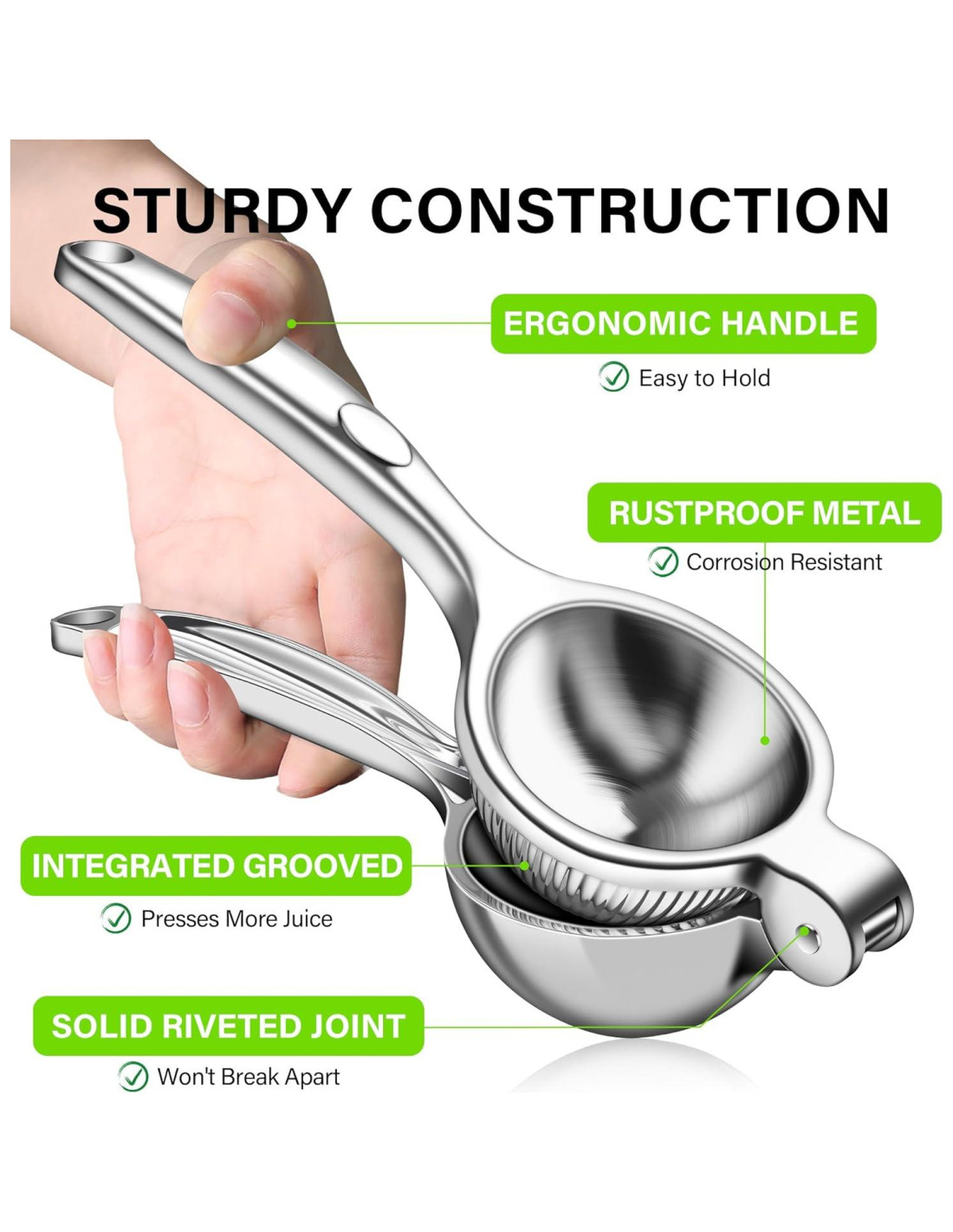 - Materiales de Calidad: Hecho de aleación de zinc apta para alimentos, este exprimidor de limón es seguro, resistente a la corrosión y construido para durar; Su diseño robusto y a prueba de corrosión asegura durabilidad a largo plazo, convirtiéndolo en una herramienta confiable y esencial para cada cocina