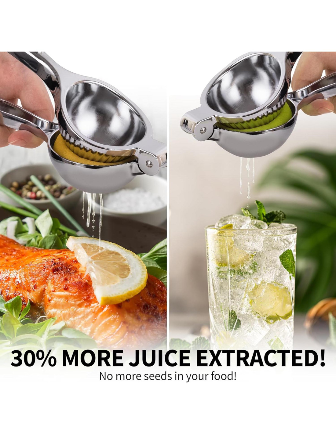- Mango Ergonómico: Hecho de aleación de zinc de grado profesional con recubrimiento de cromo que es duradero y resistente, garantizado para no doblarse o romperse incluso con uso frecuente. Construido con grandes mangos curvados sólidos para un máximo apalancamiento que hace que exprimir cítricos sea fácil y sin esfuerzo. Esta herramienta te hará cuestionar por qué has estado exprimiendo limones a mano todos estos años.