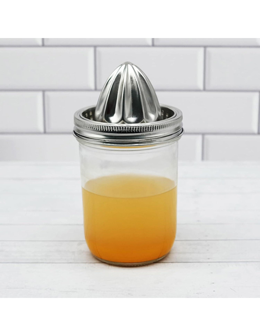 - Esta tapa de exprimidor de limón de acero inoxidable convierte tu frasco Mason en un nuevo exprimidor manual conveniente, simplemente aplasta la fruta en la parte superior y el filtro cuela la pulpa y las semillas, dejando el recipiente con jugo fresco, perfecto para beber o almacenar