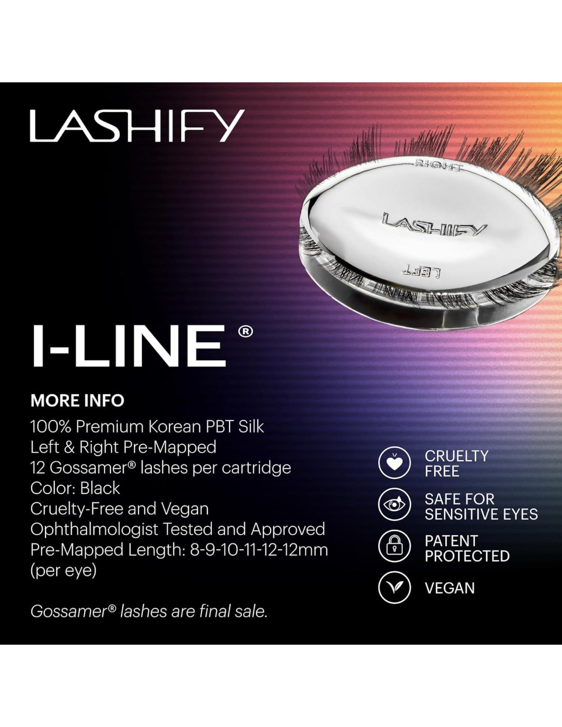 - Presentamos el I-Line: una nueva pestaña Lashify que logra un efecto angulado. El primer producto en la nueva colección de Gossamers Pre-Mapeados. Colocados en orden descendente para el Efecto Delineador. Este estilo de pestaña es para usuarios avanzados.