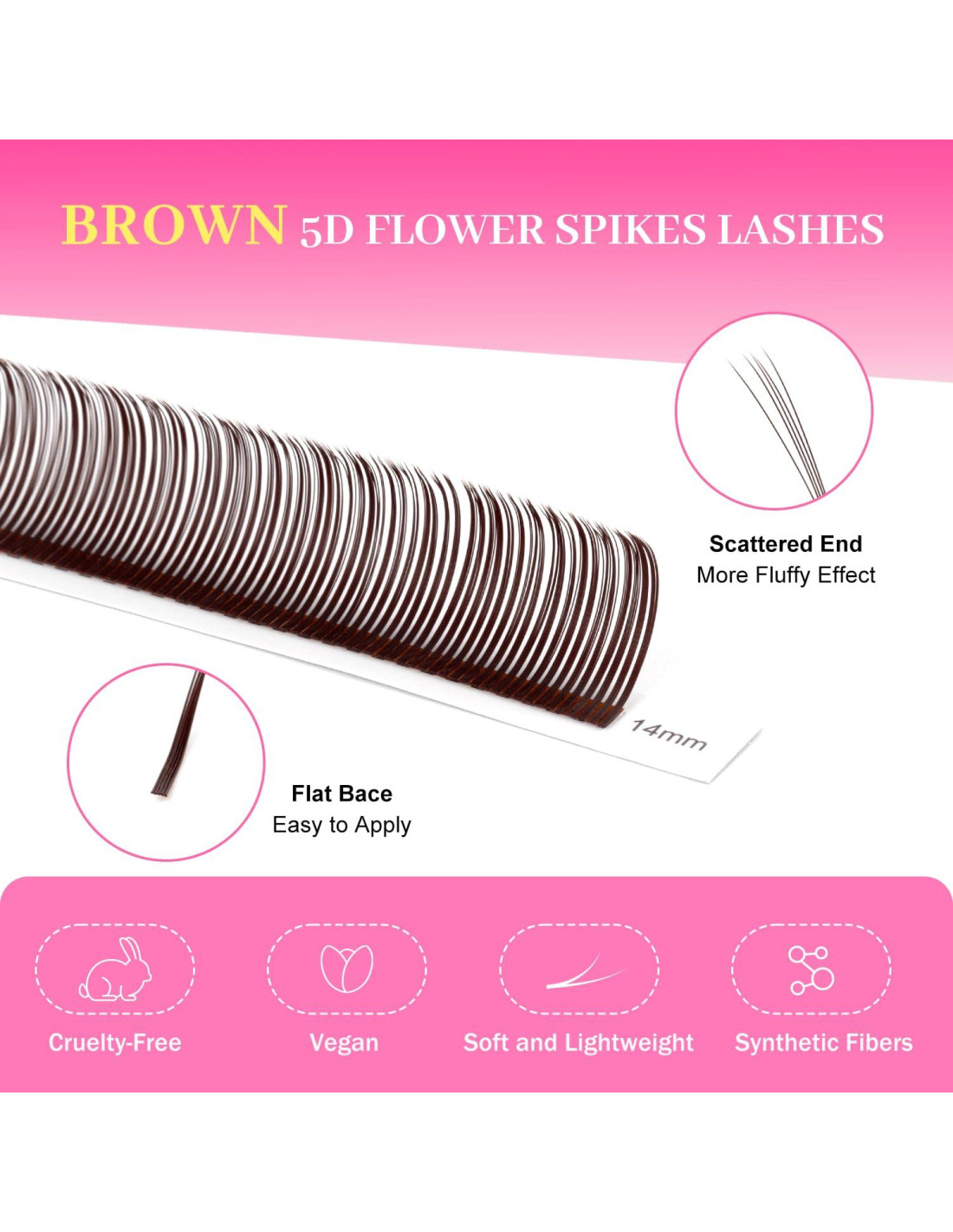 - Desarrolla diversos estilos de pestañas. Este diseño de pestañas de flor 5D puede lograr un efecto de picos, permitiéndote combinar varias pestañas injertadas para presentar una variedad de estilos ricos para que tus clientes elijan.