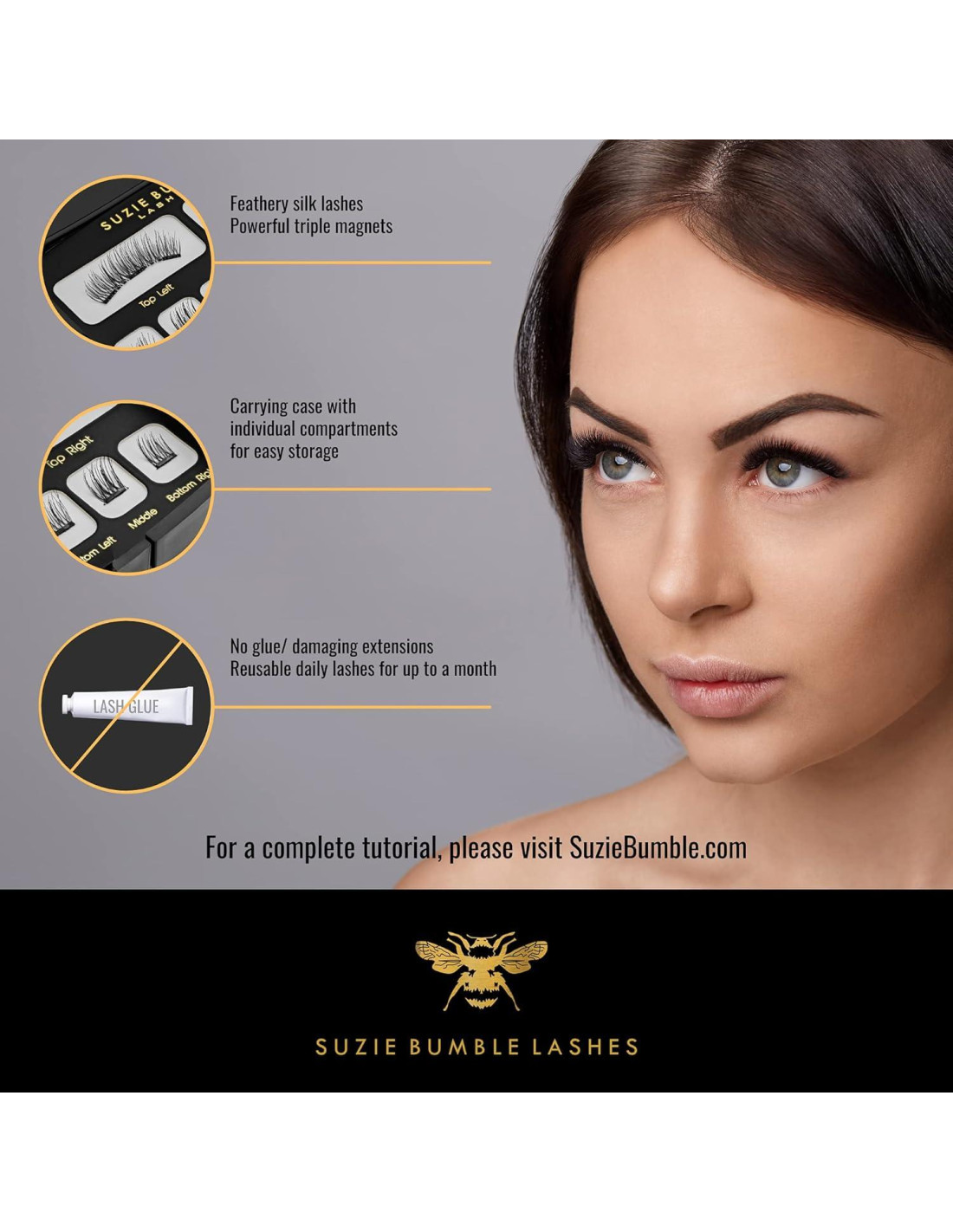 - Aplicador Y Dos Pestañas Extras: ¿Perdiste o extraviaste una pestaña? ¡No hay problema! Cada estuche de pestañas Suzie Bumble viene con dos pestañas inferiores adicionales que se pueden usar de manera intercambiable con otras pestañas inferiores además del aplicador