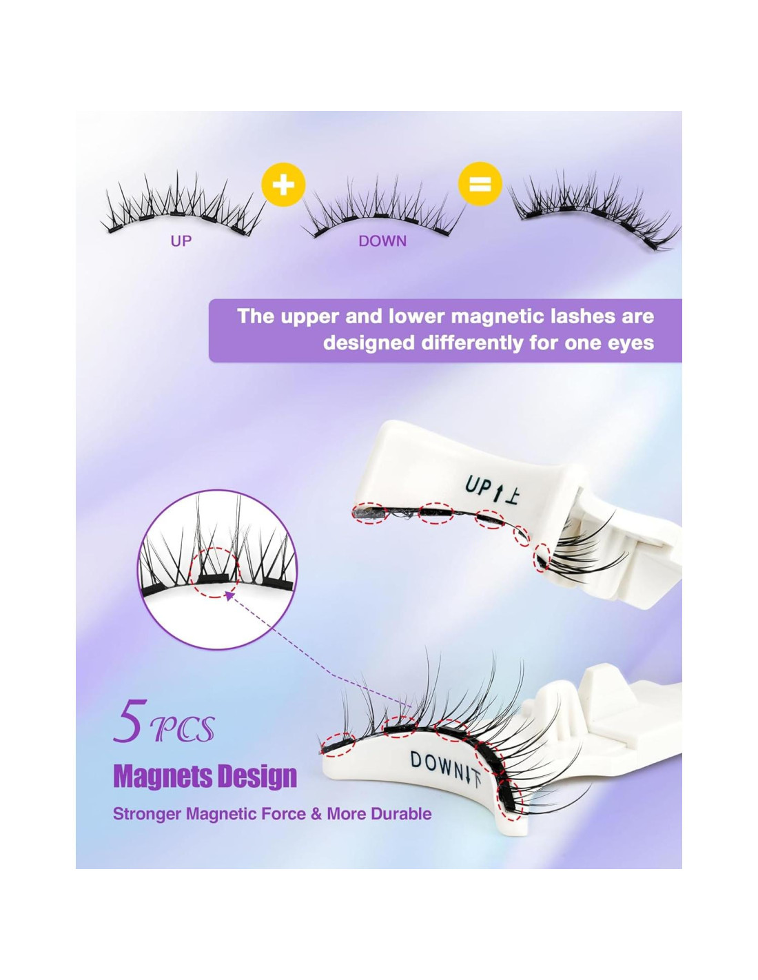 - 5X Sujeción Magnética Más Fuerte: 5 imanes ultra fuertes por pestaña aseguran un ajuste seguro e instantáneo, ¡sin adhesivo necesario! Se mantiene todo el día, incluso con párpados grasos o ojos con pliegues