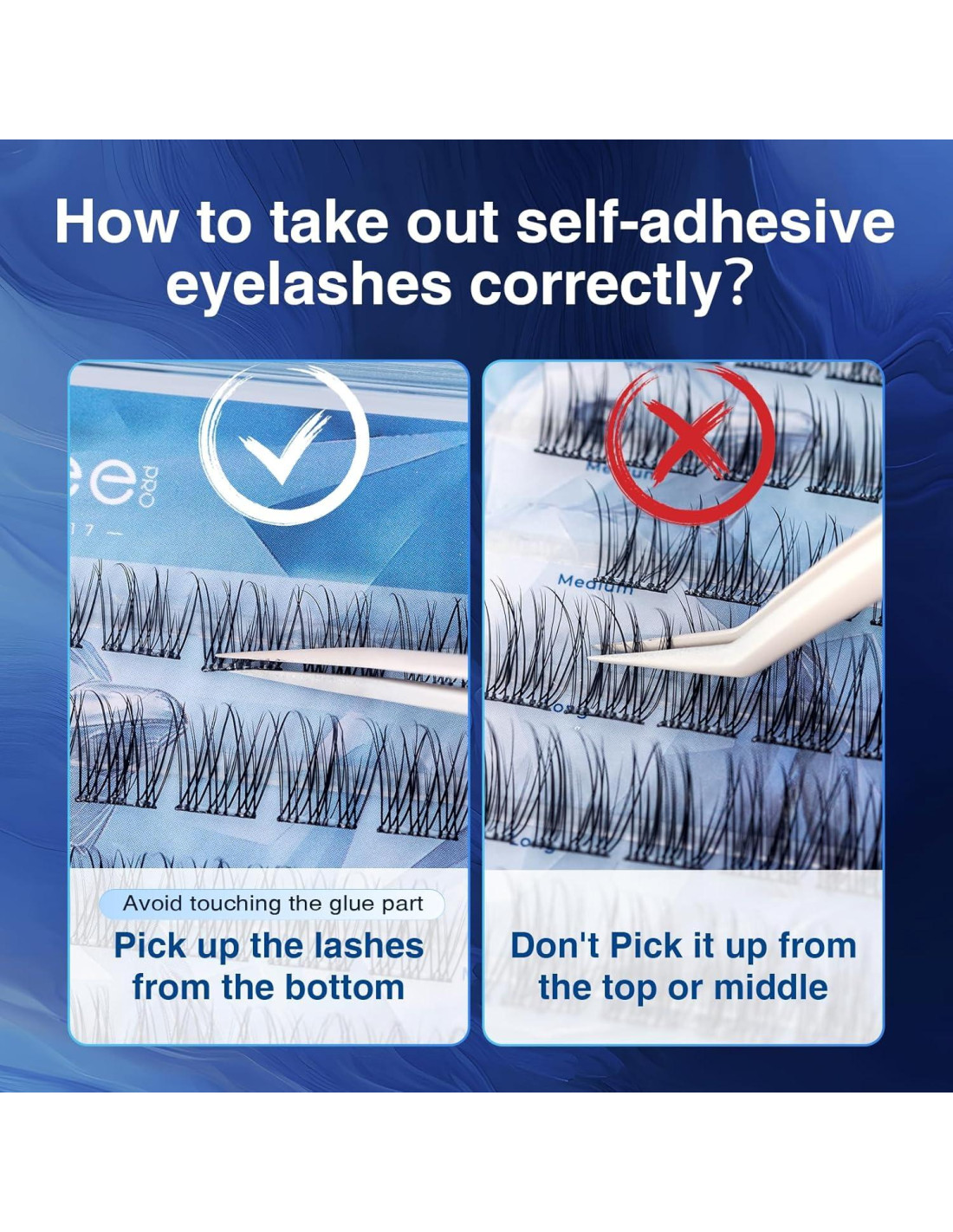 - Aplicación Fácil, Sin Necesidad de Pegamento: ¡Di adiós al pegamento desordenado! Simplemente presiona y pega para un aspecto de pestañas impecable en segundos, sin la molestia de aplicar adhesivo líquido.