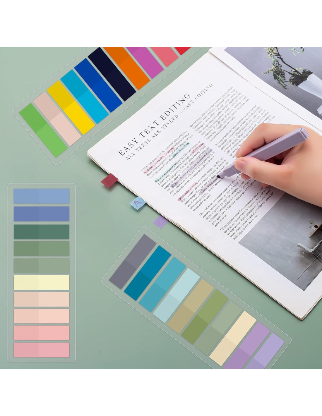 - [Tamaño y Cantidad] Nuestras Pestañas Adhesivas Morandi Transparentes miden 4.39 * 1.09 pulgadas (11.14 * 2.77 cm) y vienen con 2400 hojas. Estas pestañas adhesivas compactas y convenientes están diseñadas para integrarse sin problemas en tu vida diaria. Ya sea que estés organizando tus notas, marcando páginas importantes en un libro o dejando recordatorios para colegas, estas pestañas adhesivas son el tamaño perfecto para cualquier tarea. Con 12 juegos en un paquete, tendrás suficiente para todas tus notas adhesivas, suministros escolares y necesidades de notas adhesivas.