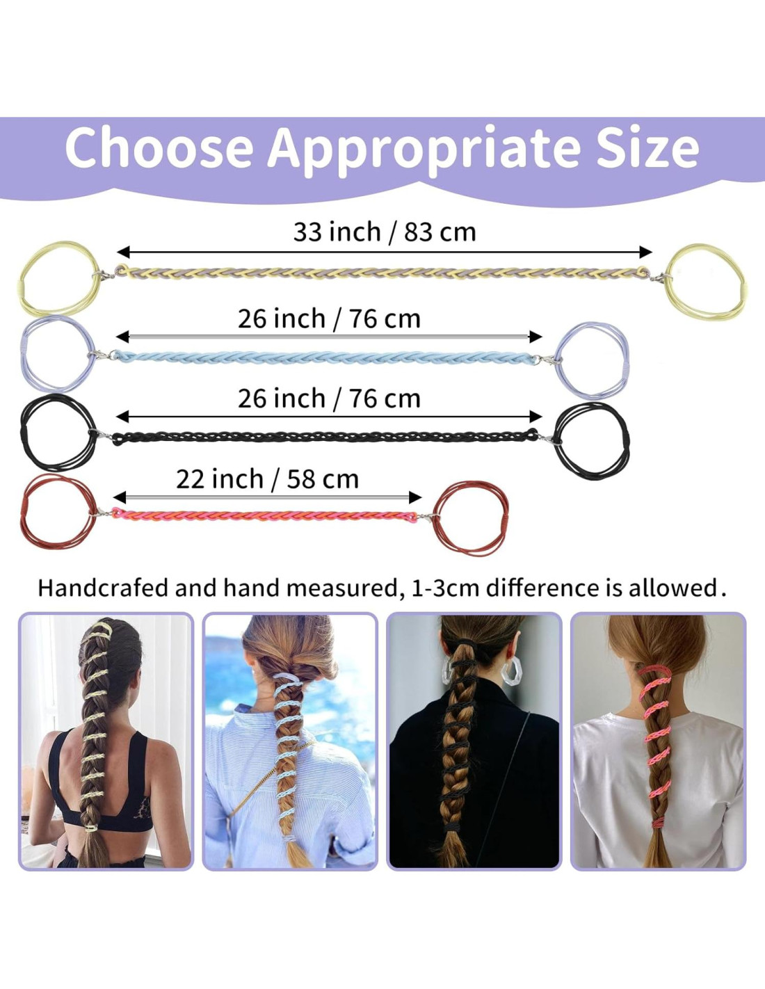 - [4 Paquete con Múltiples Tamaños] Este conjunto incluye 4 tiras de cabello en espiral en tamaños versátiles: 1x84 cm, 2x66 cm, y 1x56 cm. Perfectos para crear varios peinados, desde trenzas sueltas hasta coletas altas, adaptándose a todas las longitudes y grosores de cabello.