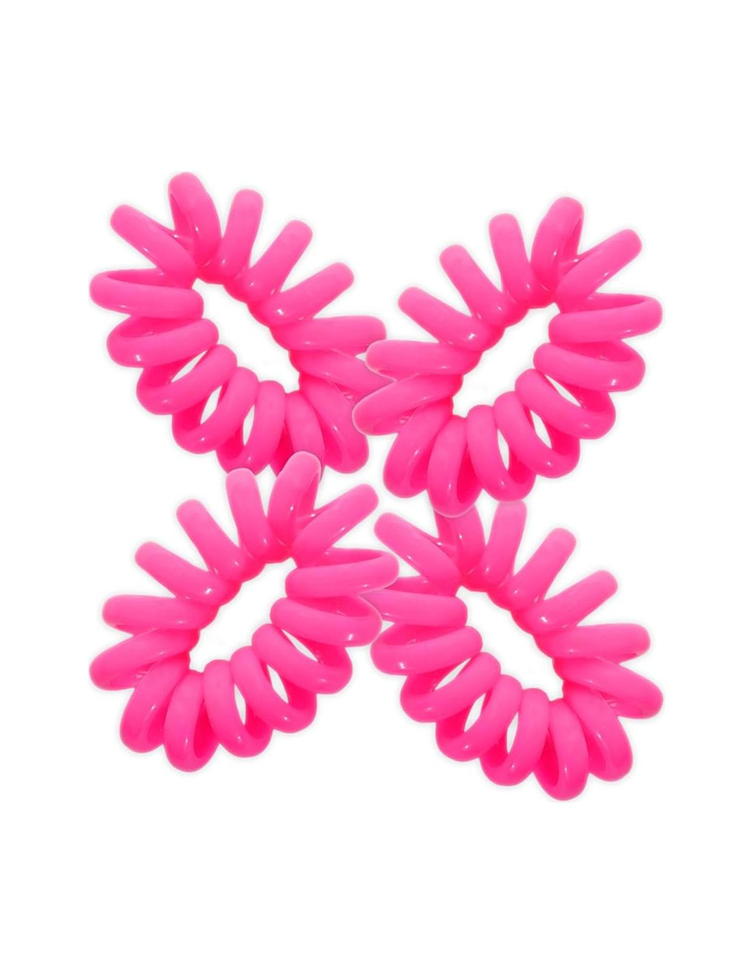 DIGA ADIÓS A LOS BULTOS DE COLETA ¿Alguna vez has deseado poder recoger tu cabello, pero sientes que no puedes porque no quieres esos temidos bultos de coleta? Con esta liga de cabello de plástico Jumbo, esos bultos son cosa del pasado. El diseño espiral único de estas ligas de cabello estilo cordón telefónico difunde la tensión en tu cabello, eliminando esos molestos pliegues cuando las quitas. ¡Ahora puedes mantener tu cabello recogido durante el día y lucir fabulosa sin esfuerzo por la noche! ¡Set de 4!