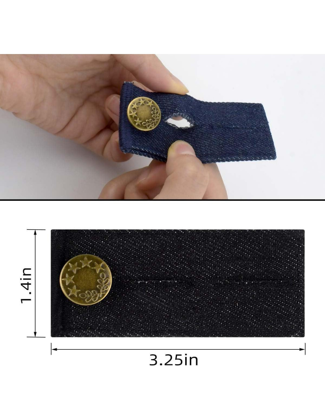 - [Alta Calidad] Nuestros extensores de cintura están hechos de material de mezclilla de primera calidad, con una hebilla de metal duradera, reutilizable y no fácilmente deformable, perfectos para ropa de mezclilla. Estos extensores de cintura pueden agregar de 1/2 a 2 pulgadas (1.27 a 5.08 cm) de espacio adicional alrededor de la cintura en segundos. Puedes ocultarlos detrás de tu cinturón o debajo de tu camisa para evitar afectar la apariencia